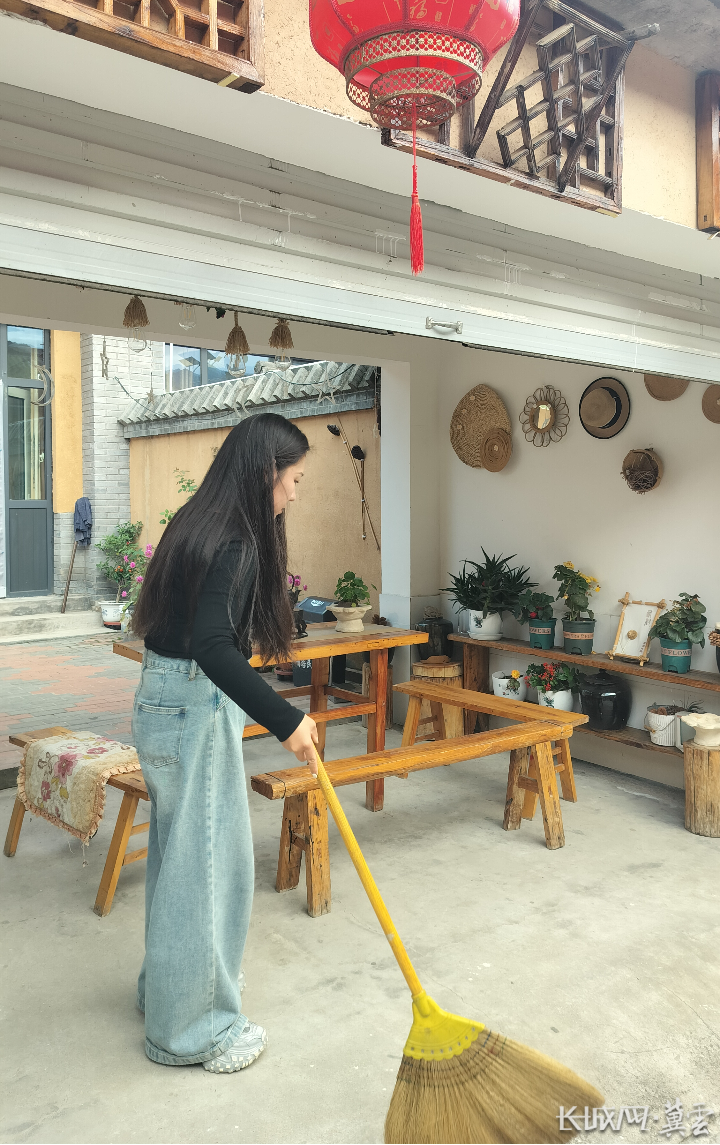 返鄉創業青年顧彩霞正在打掃自家的民宿。 長城網·冀云客戶端記者 馬晨輝 攝