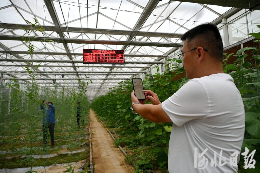 9月20日,河北綠園生態(tài)莊園農(nóng)業(yè)開發(fā)有限公司管理員通過手機(jī)控制保溫簾,調(diào)控智能日光溫室的溫度。焦磊攝
