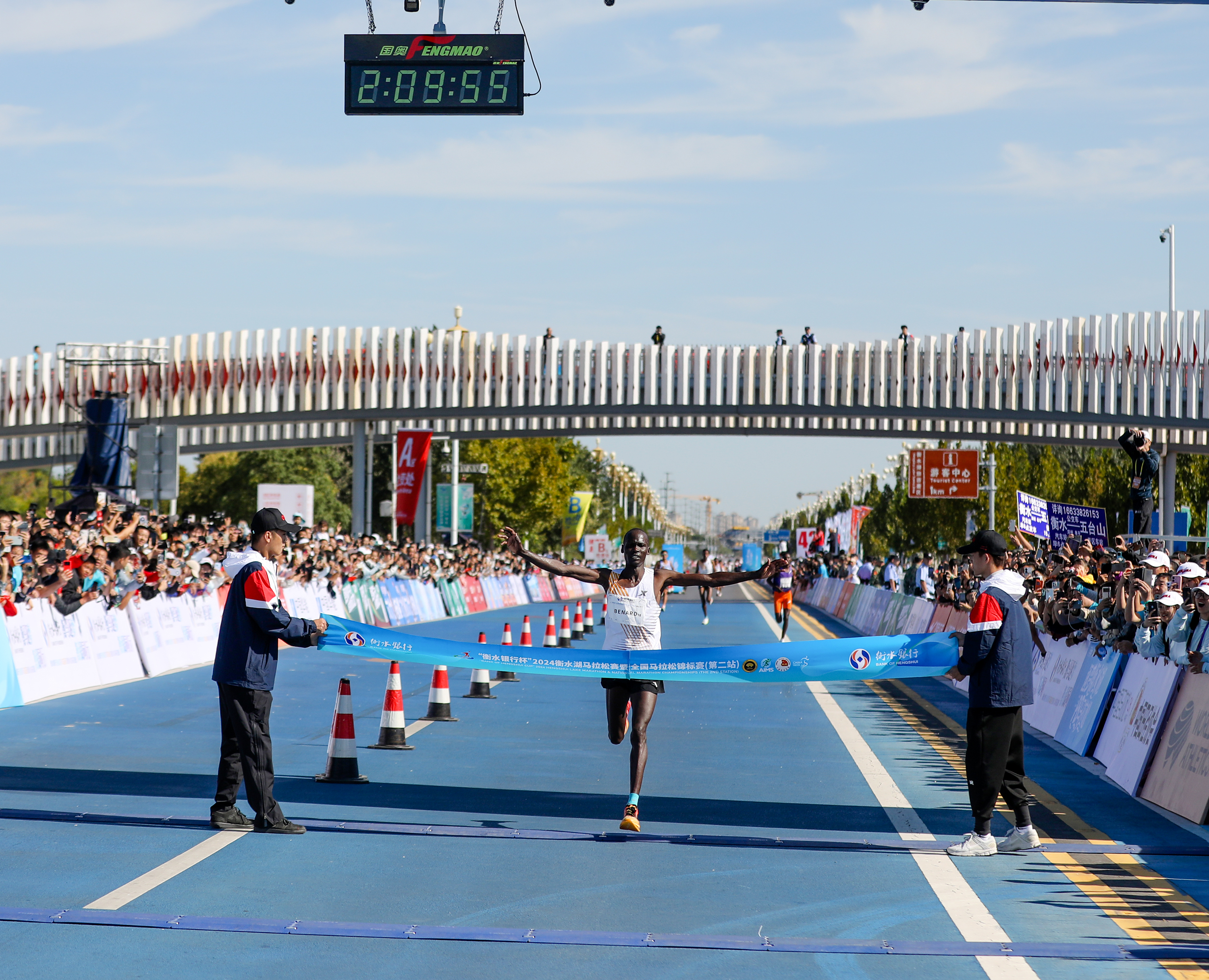 9月22日,在2024衡水湖馬拉松賽上,經過兩個多小時的激烈角逐,來自肯尼亞的貝納德·基普科里爾以2小時09分57秒的成績奪得衡水湖馬拉松賽男子組冠軍。