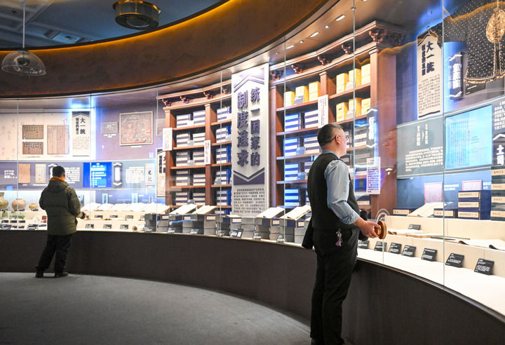 ??2023年12月23日,參觀者在北京民族文化宮參觀鑄牢中華民族共同體意識文物古籍展。新華社記者 郝建偉 攝