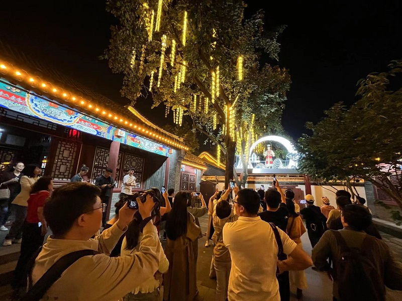 夜間的正定,古樸的建筑被燈光勾勒得輪廓分明,老街上,車燈與路燈交相輝映,人頭攢動,熱鬧非凡。此時,多數景點已沉睡在夜幕中,而榮國府景區卻懸燈結彩,好不熱鬧。