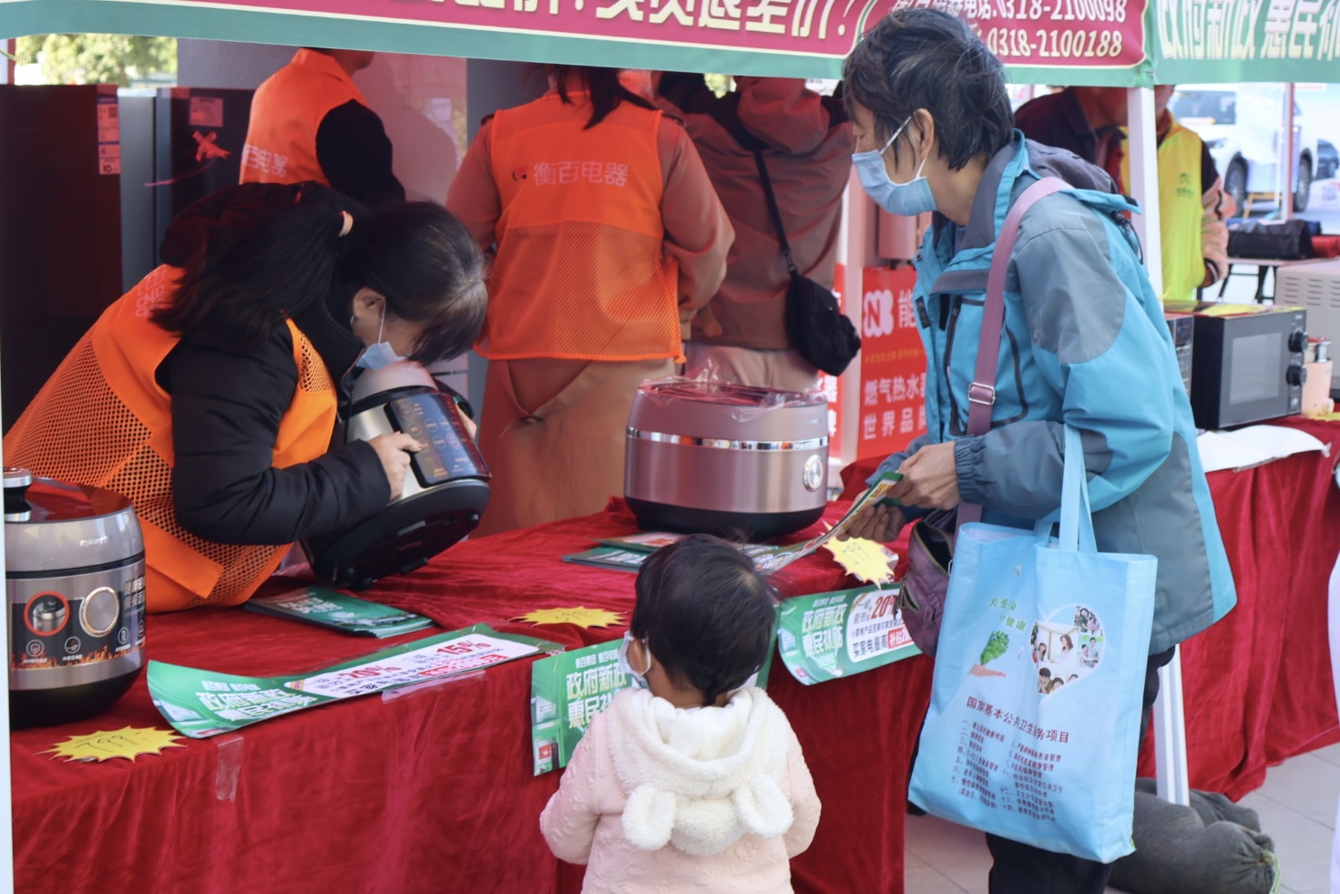 在家電展區(qū),我市吉美家電等家電經(jīng)銷企業(yè)及海爾、格力、美的等家電品牌廠家展出相關(guān)產(chǎn)品;在特色美食展區(qū),老景官燒雞、故城貢面、志興齋糕點(diǎn)、深州酥糖等衡水特色美食,呈現(xiàn)了一場(chǎng)“舌尖”上的盛宴。此外,非遺產(chǎn)品展區(qū)也不容忽視,手工地毯、龐記鹽水鵝等產(chǎn)品在這里展出,吸引了眾多市民駐足觀看,展現(xiàn)了衡水的非遺之美。