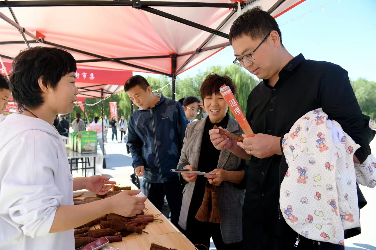 當天,大型花街市集活動內容豐富,精彩紛呈。活動共設置52個展位,囊括非遺產品、特色產品、特色美食、文化表演等各類產品項目。其中,鴨梨、冬桃等綠色產品果香四溢,讓人垂涎欲滴;剪紙、布鞋等盡顯阜城非遺技藝之美;家電、家具、汽車等與人們生活息息相關的眾多產品,為市民和游客朋友們呈現一場可逛、可賞、可嘗、可體驗的非常盛宴。