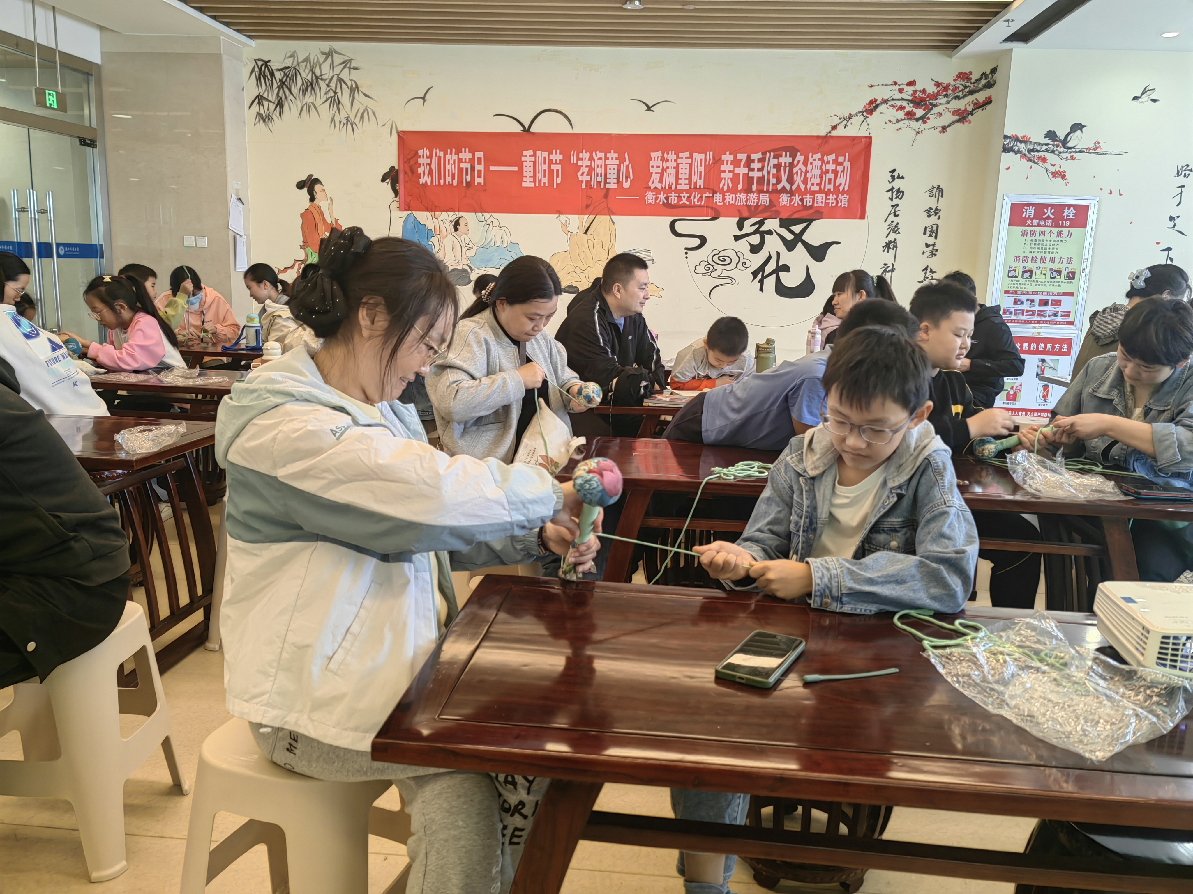 10月4日“我們的節日——重陽節‘孝潤童心 愛滿重陽’親子手作艾灸錘講座”在衡水市圖書館國學館開展。館員通過講解重陽節相關課件,為親子家庭講述了重陽節的由來以及各項傳統習俗,讓小讀者們更多的了解中國傳統文化習俗。