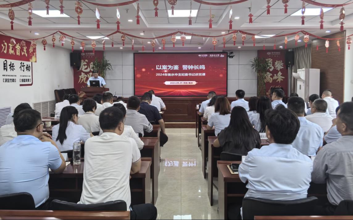 9月25日,中華財險衡水中支紀委書記周雙剛以《以案為鑒,警鐘長鳴》為題,為全體黨員干部講授廉潔黨課。