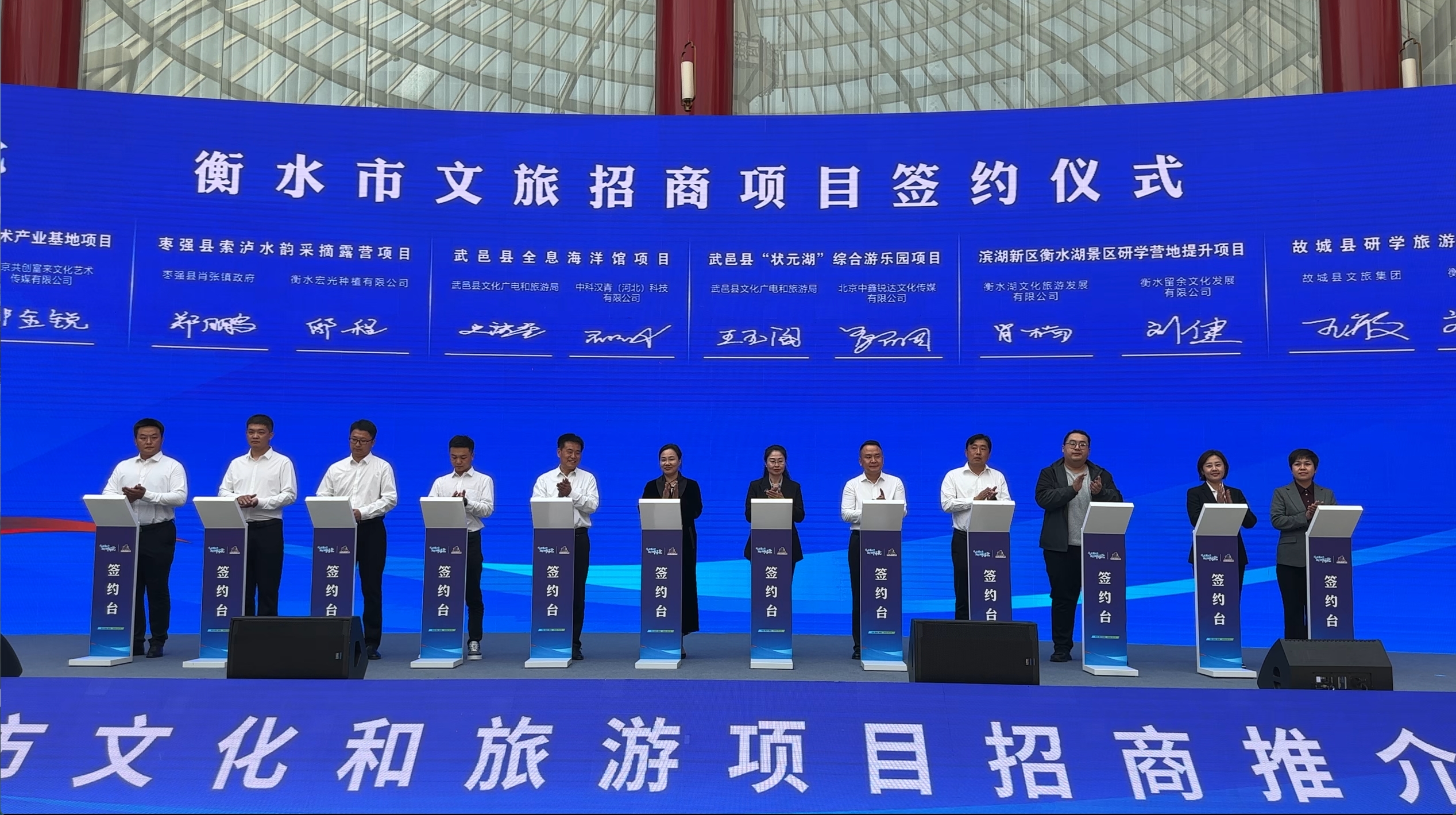 推介會現場,故城縣、濱湖新區、桃城區、深州市、景縣等5個重點縣市區分別進行了文化和旅游招商項目推介。此次推介會,共發布招商項目31個,招商總額77億元,簽約項目6個,簽約總額達5.13億元。