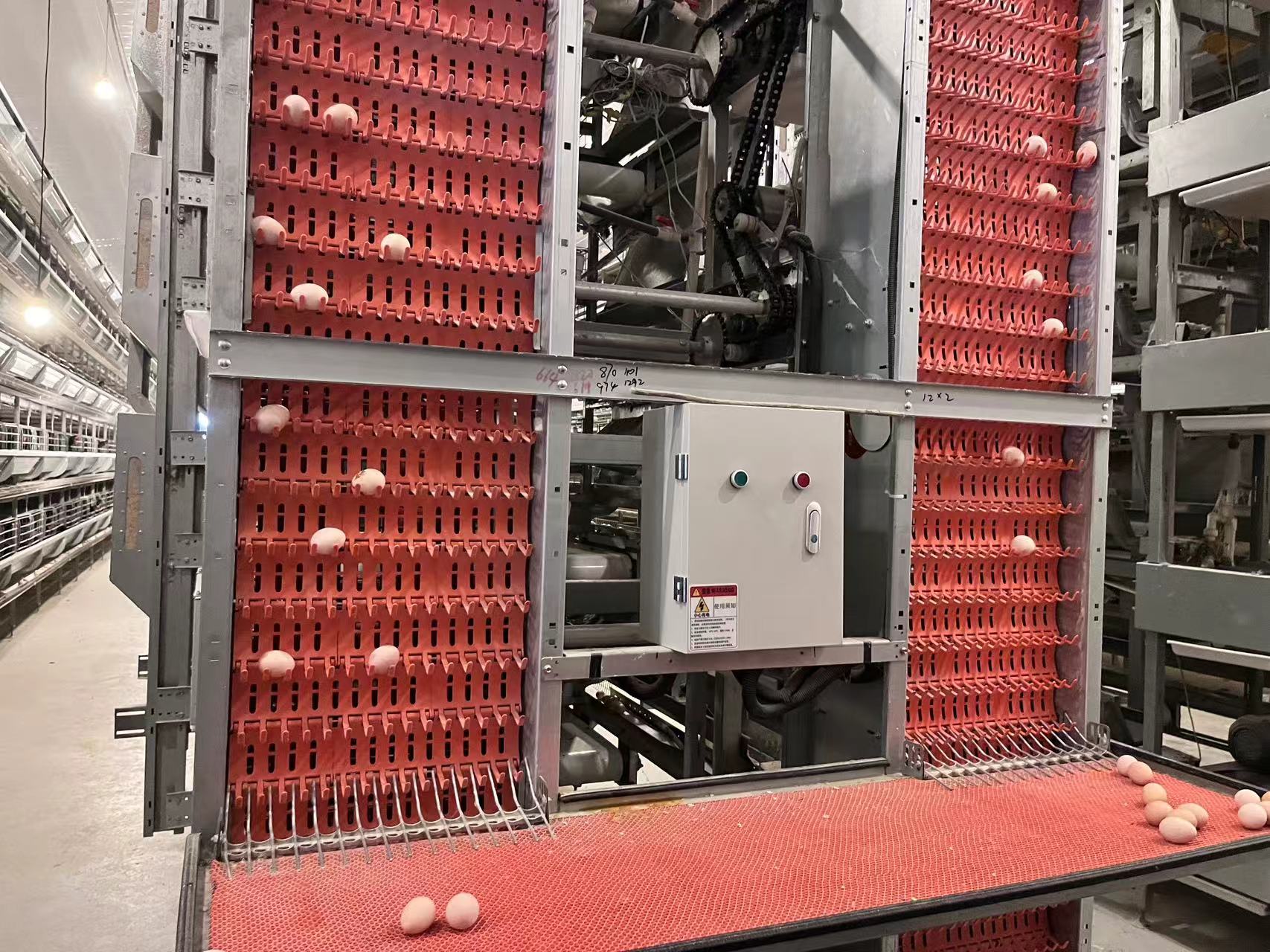 在棗強縣棗強鎮趙屯村健婷土雞養殖專業合作社的全自動立體化雞舍內,一曲曲歡快的音樂縈繞回響,雞鳴聲此起彼伏,一層層雞籠整齊有序,孫英杰熟練地摁下電源開關,一枚枚新鮮的雞蛋便通過傳送帶乘坐“電梯”運到了分揀臺上,工人便開始撿蛋、裝箱。