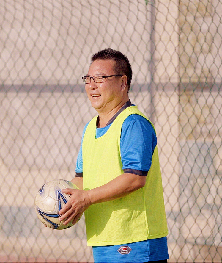 8月29日,劉克儉在光淀村足球場踢球。縱覽新聞記者 白中豪 攝