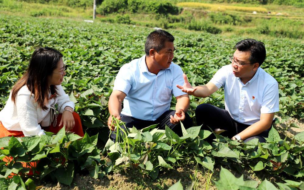 圖:駐村書記與鄉(xiāng)鎮(zhèn)干部對接通過普惠金融謀發(fā)展促增收
