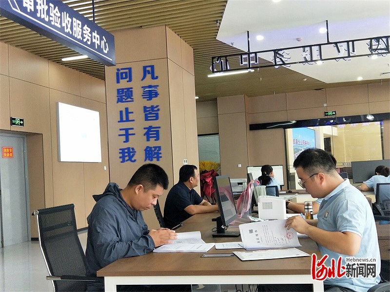 圖為7月31日威縣企業服務中心工作人員(右)正在幫助一家企業補充完善注冊審核資料。 (資料片)趙國華 攝