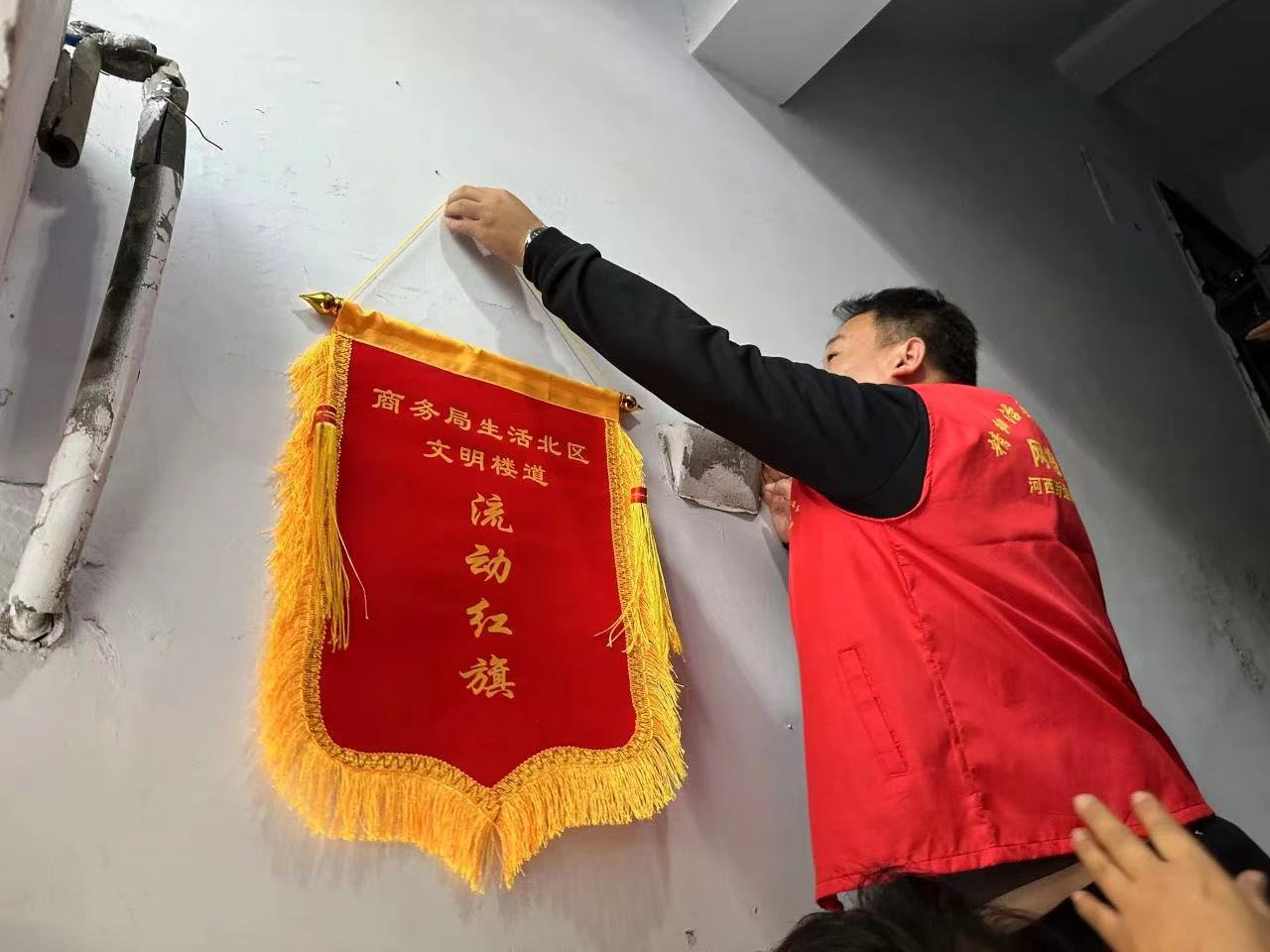 活動當天,首先進行了授旗儀式,為評選出的“五好文明樓道”頒發了流動紅旗。隨后,獲獎的“五好文明樓道”代表們也各自分享了他們的經驗做法。