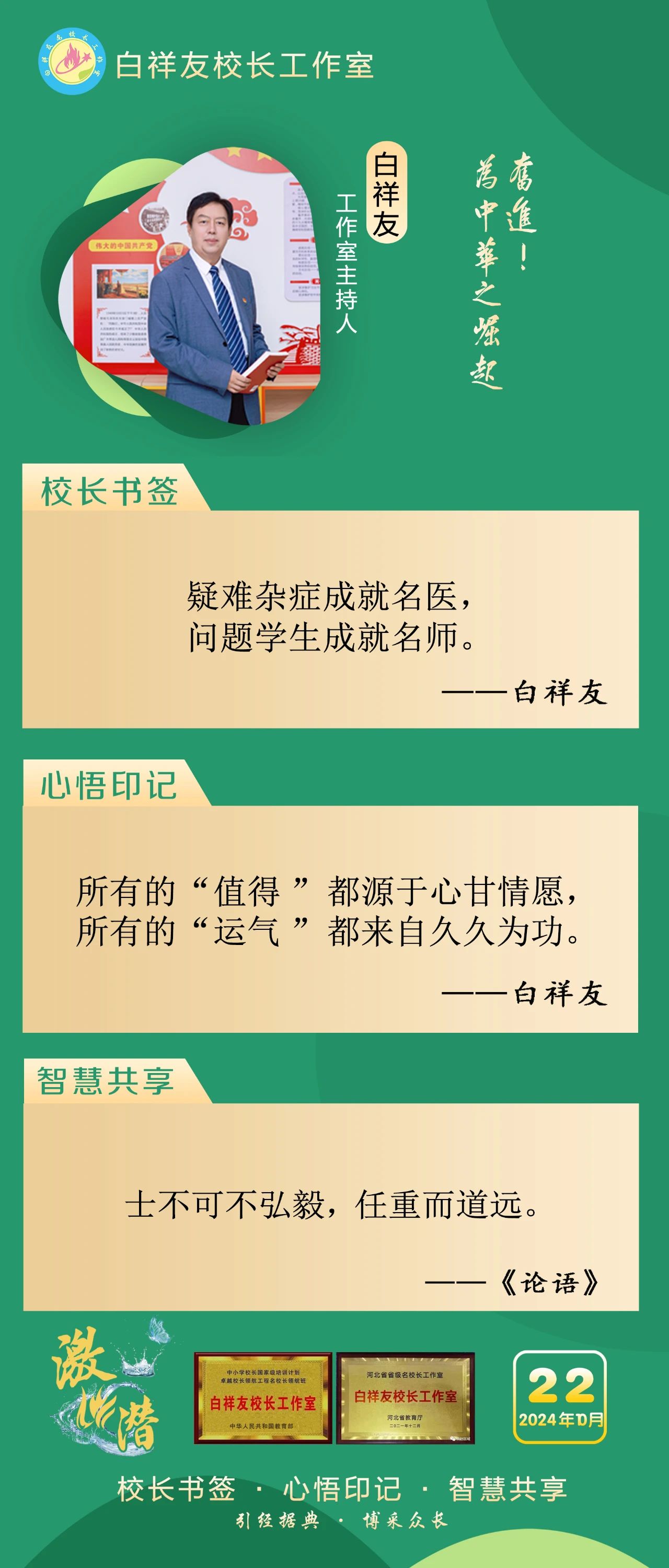 “白祥友校長工作室”成立于2019年4月,是教育部“國培計劃”中小學名校長領航工程、河北省首批名校長工作室,目前省內外成員校37個。工作室堅持“資源共享、智慧共融、互助共贏”理念,已成為思想碰撞的交流場,資源共享的品牌站,成果展示的輻射源。
