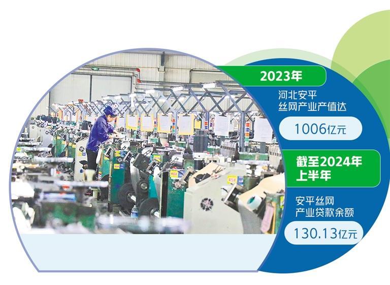產業發展離不開金融活水。衡水市引導金融機構積極創新金融服務,支持絲網產業發展。截至2024年上半年,安平縣絲網產業貸款余額達到130.13億元,同比增長17.83%。