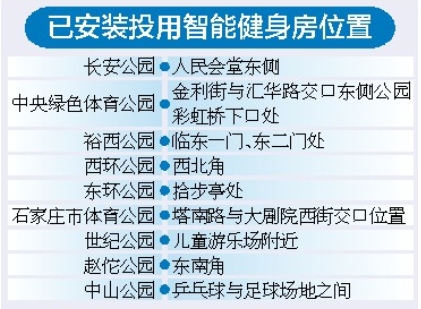 記者從石家莊市體育局獲悉,目前石家莊的這種室外智能健身房,不僅僅在體育類的公園里才有,除了中央綠色體育公園、體育公園外,在長安公園、世紀(jì)公園等處也有設(shè)置,總共安裝投用了9處。