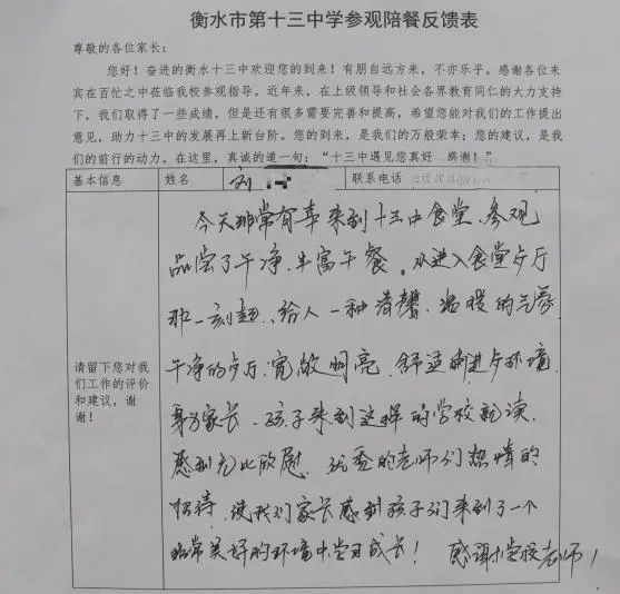 此外,家長們還品嘗了學(xué)校的餐食,從色香味俱佳的菜肴中,他們更加感受到學(xué)校對(duì)孩子們飲食健康的重視。大家填寫了《反饋表》,紛紛表示對(duì)學(xué)校的教育教學(xué)工作和后勤保障工作給予了高度評(píng)價(jià),并期待未來能有更多機(jī)會(huì)參與學(xué)校的各項(xiàng)活動(dòng)。