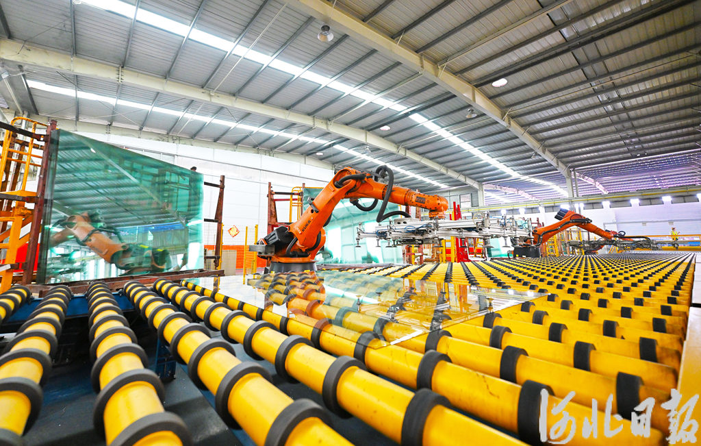 7月15日,環(huán)保績效A級企業(yè)沙河市鴻昇玻璃有限公司機械手在生產(chǎn)線工作。河北日報記者 趙永輝攝
