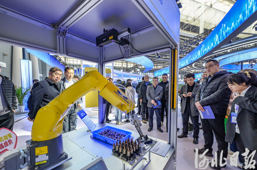10月24日,2024中國國際數(shù)字經(jīng)濟博覽會在石家莊(正定)國際會展中心開幕。圖為與會者在參觀梅卡曼德機器人。河北日報記者田明攝