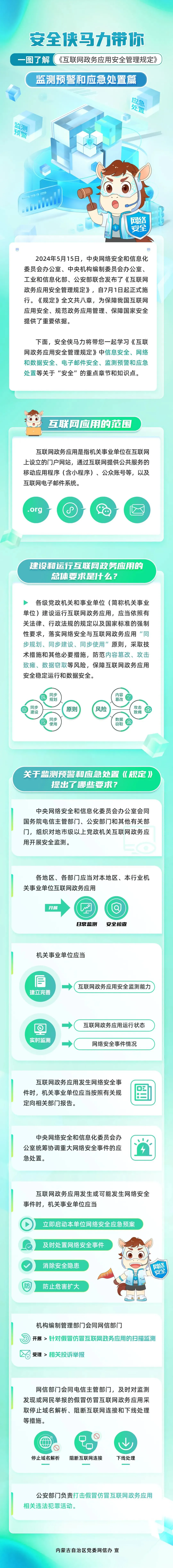 近日,內蒙古自治區黨委網信辦推出作品《一圖了解〈互聯網政務應用安全管理規定〉》。閱讀長圖,一起了解《規定》中關于“安全”的重點內容吧。