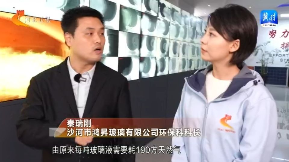 我們這個生產線改造完以后,由原來每噸玻璃液需要耗190方天然氣,降到現在160方天然氣,而且我們這個氮氧化物濃度能穩定達標在50毫克以下,要遠低于河北(創A)排放標準。