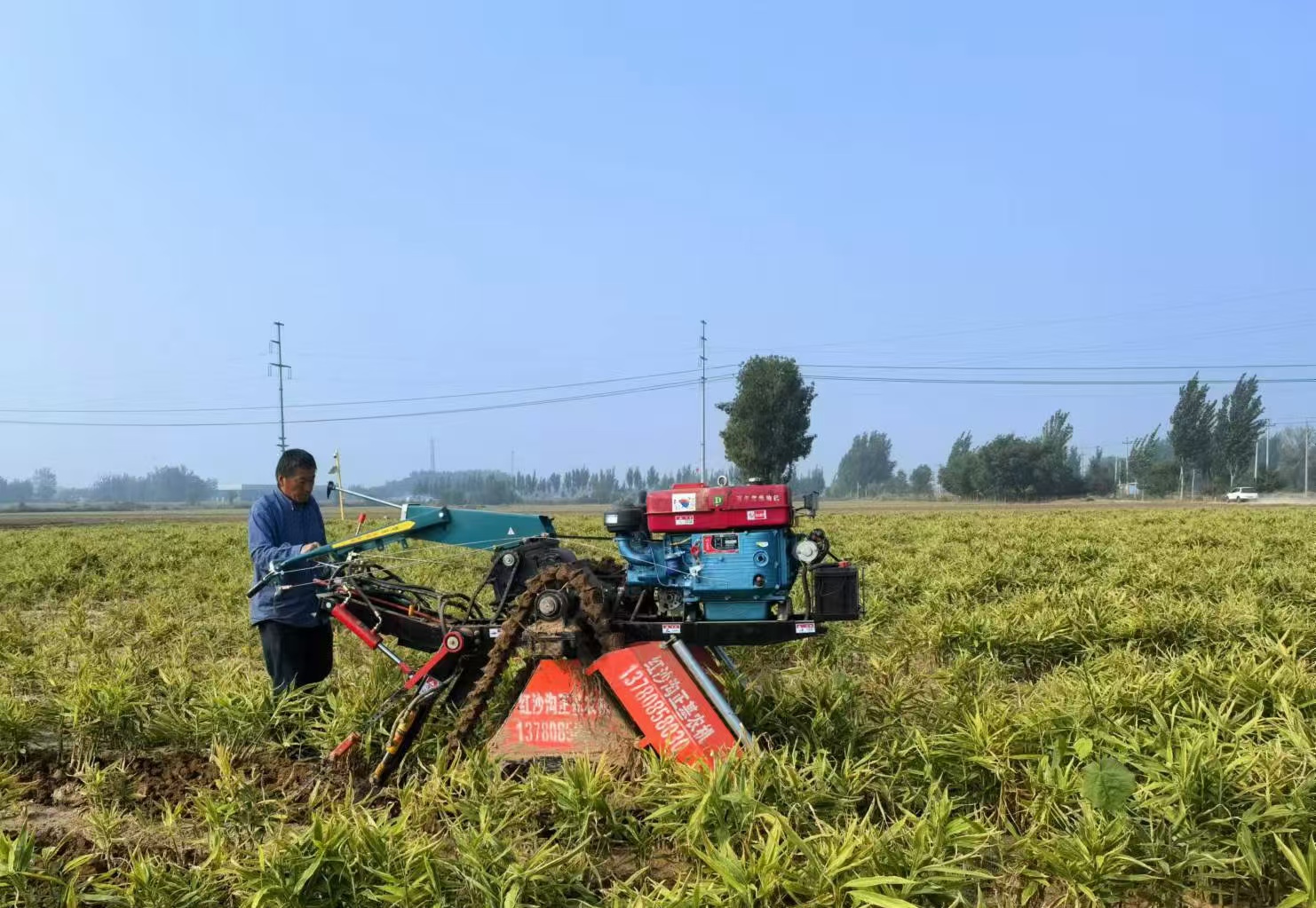 10月30日上午,在棗強縣棗強鎮趙王坊村的黃姜種植田里,一臺收姜機在壟間來回穿梭,農民們忙碌著將黃姜從泥土中拔出來,去根、剪葉、裝箱……大家動作麻利、歡聲笑語,一派熱火朝天的豐收景象。