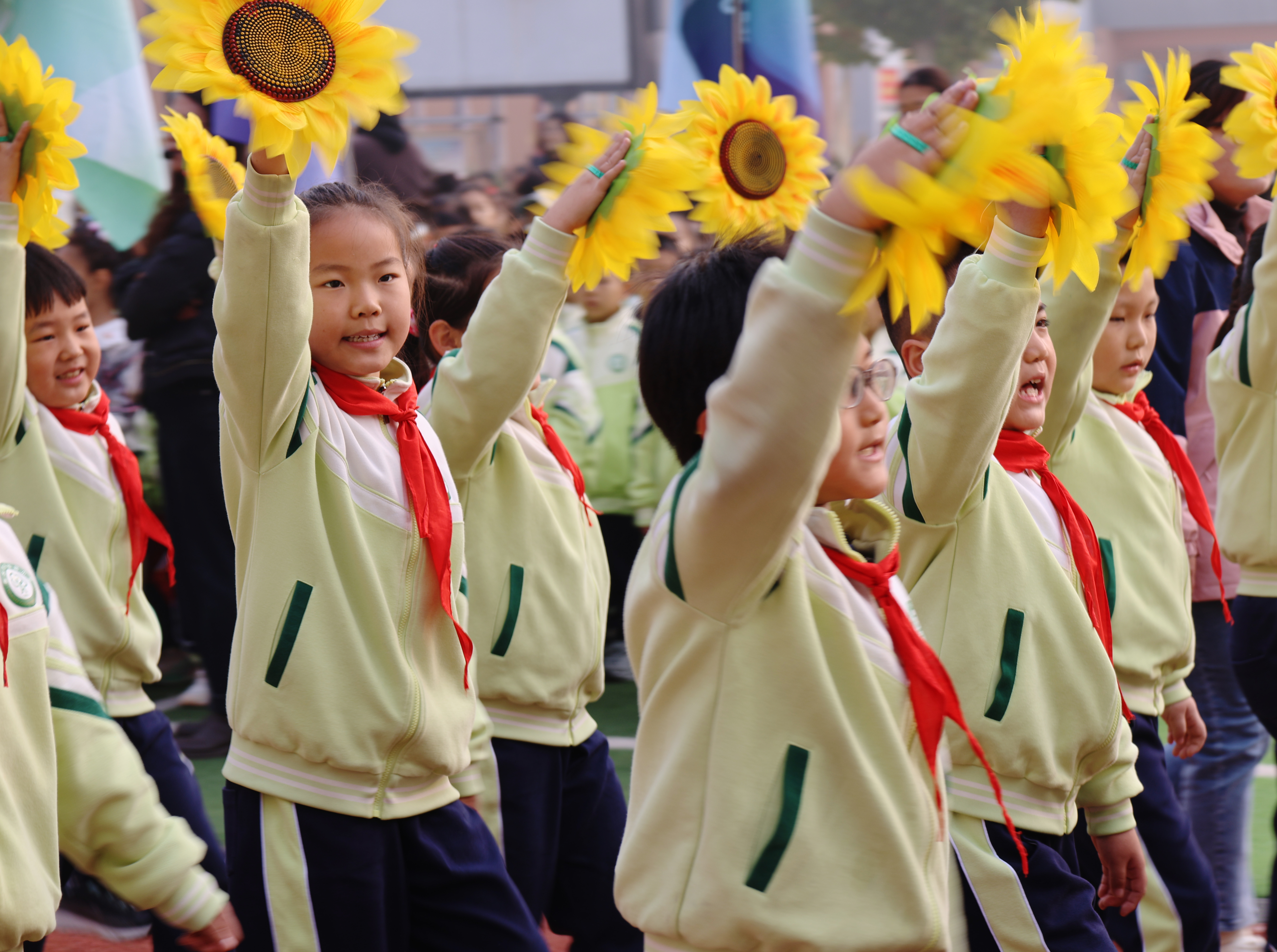隨后,各年級方隊依次走過主席臺。孩子們手舉紅旗、太陽花、氣球等,色彩斑斕,猶如一道亮麗的風景線。他們步伐堅定有力,整齊響亮的口號聲此起彼伏,臉上洋溢著青春的笑容,仿佛一群朝氣蓬勃的精靈在學校操場上盡情舞動。