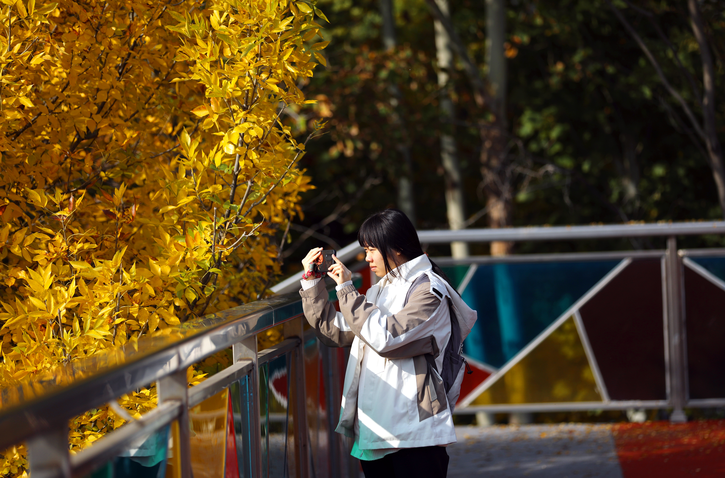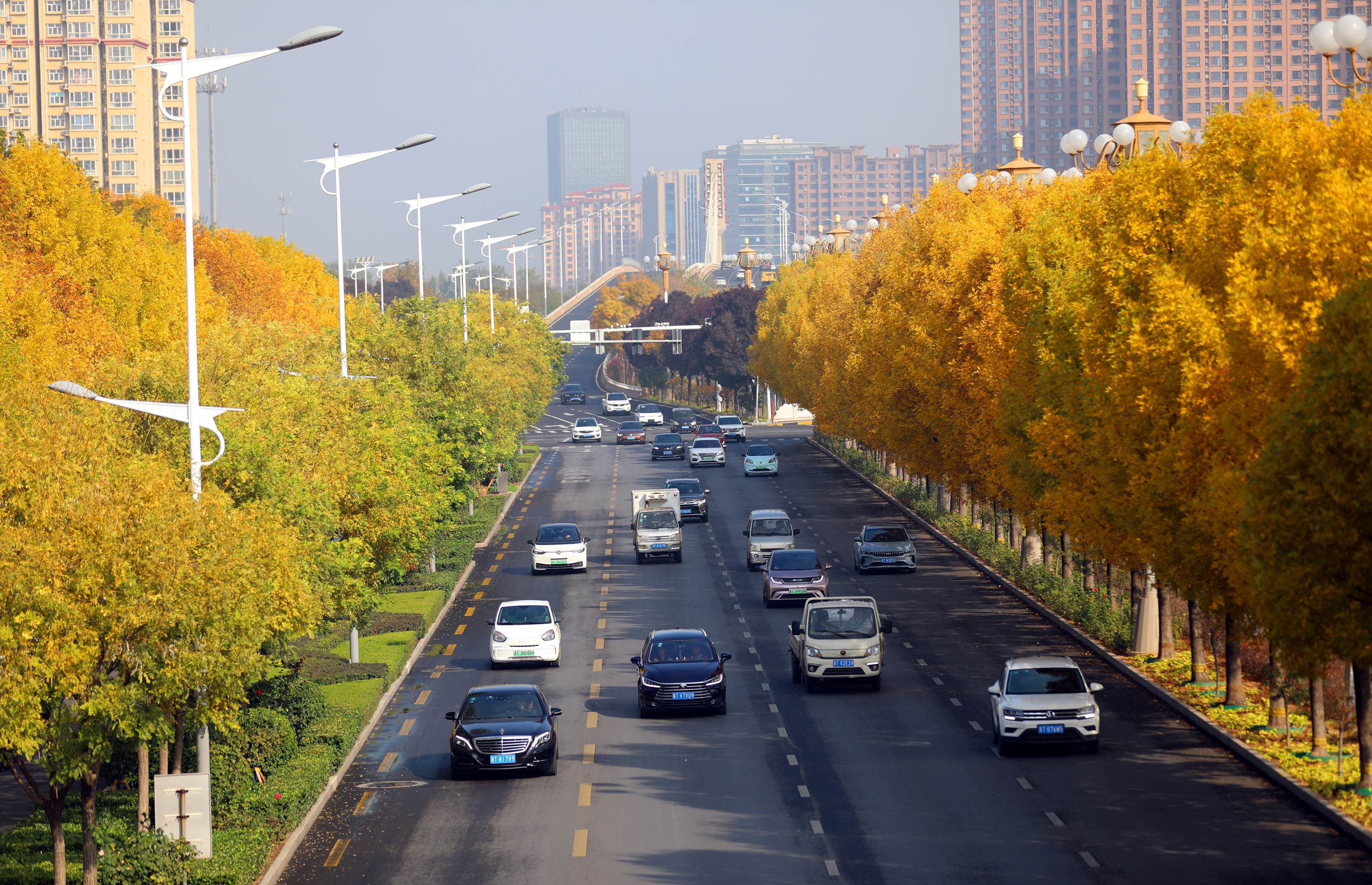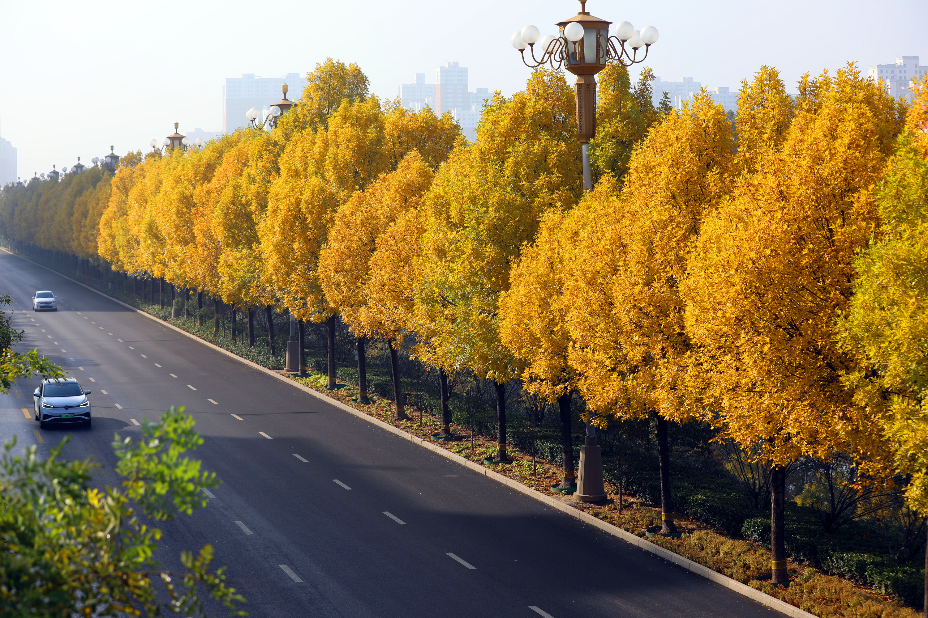 又是一年深秋,隨著氣溫逐漸降低,市區前進大街上的白蠟樹、金葉槐等樹木開始變色,金黃與翠綠交織,成為一道亮麗的風景線。市民或停下腳步,舉起手機拍照;或悠閑散步,感受這最美的秋色。