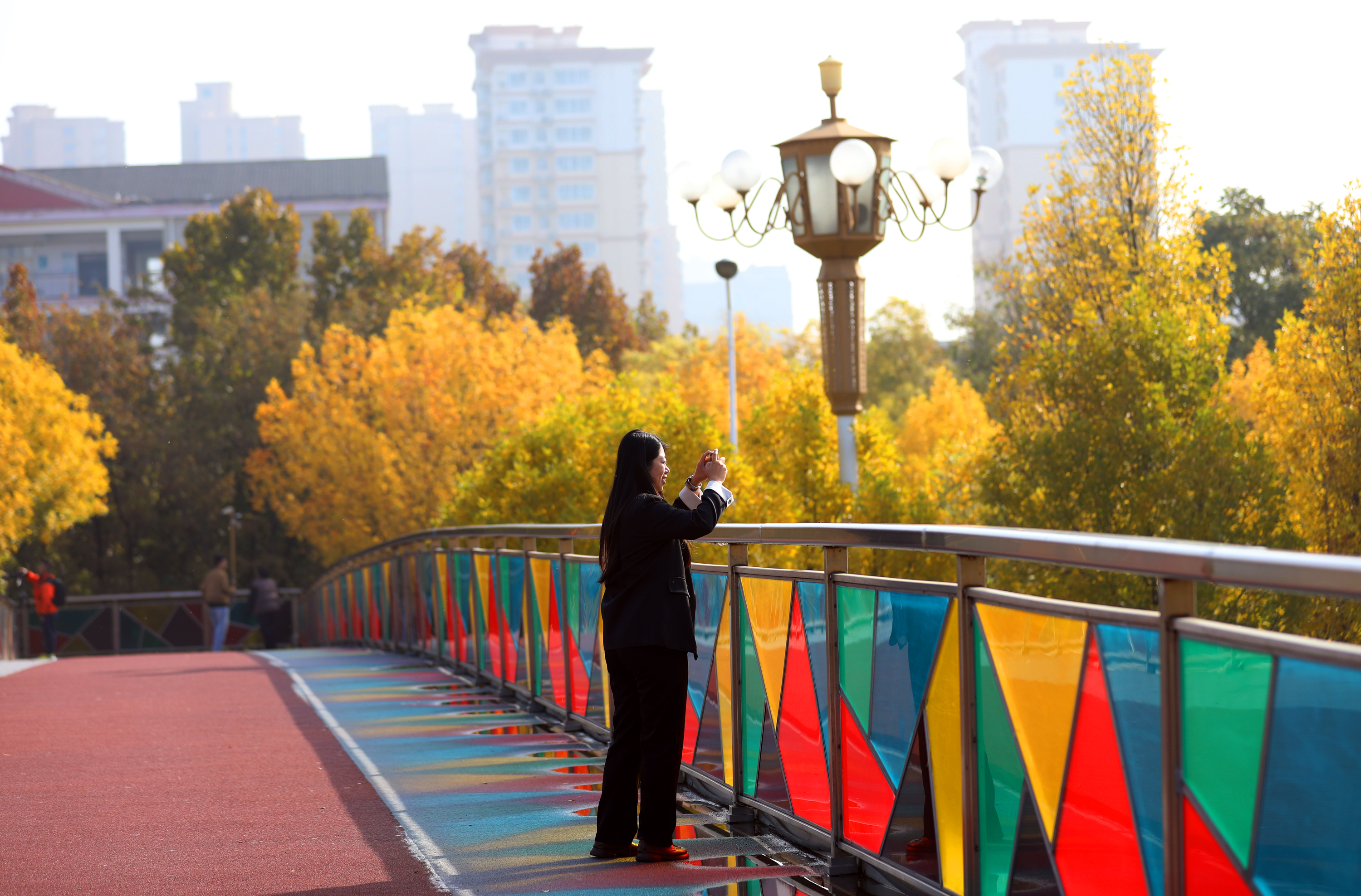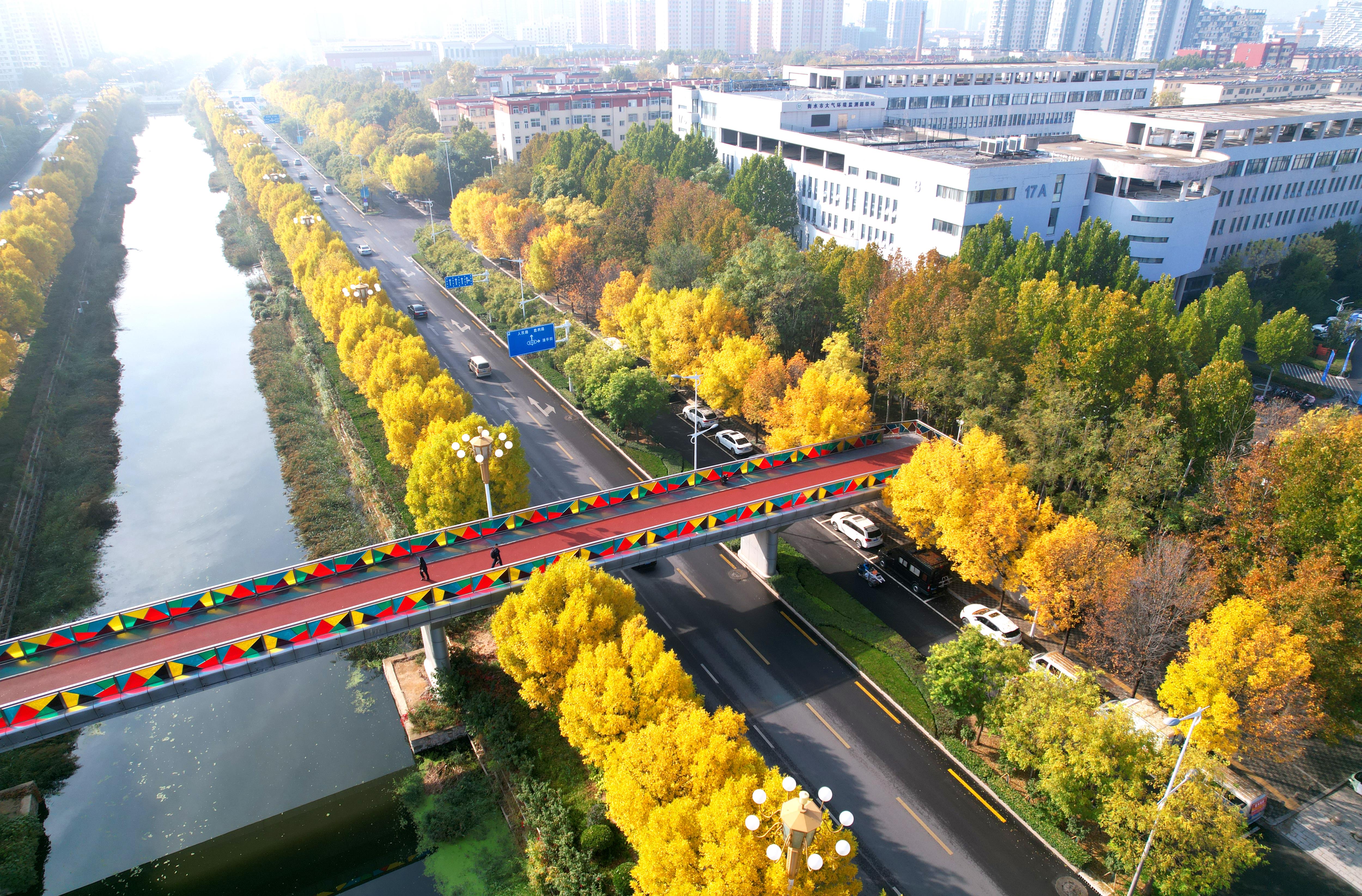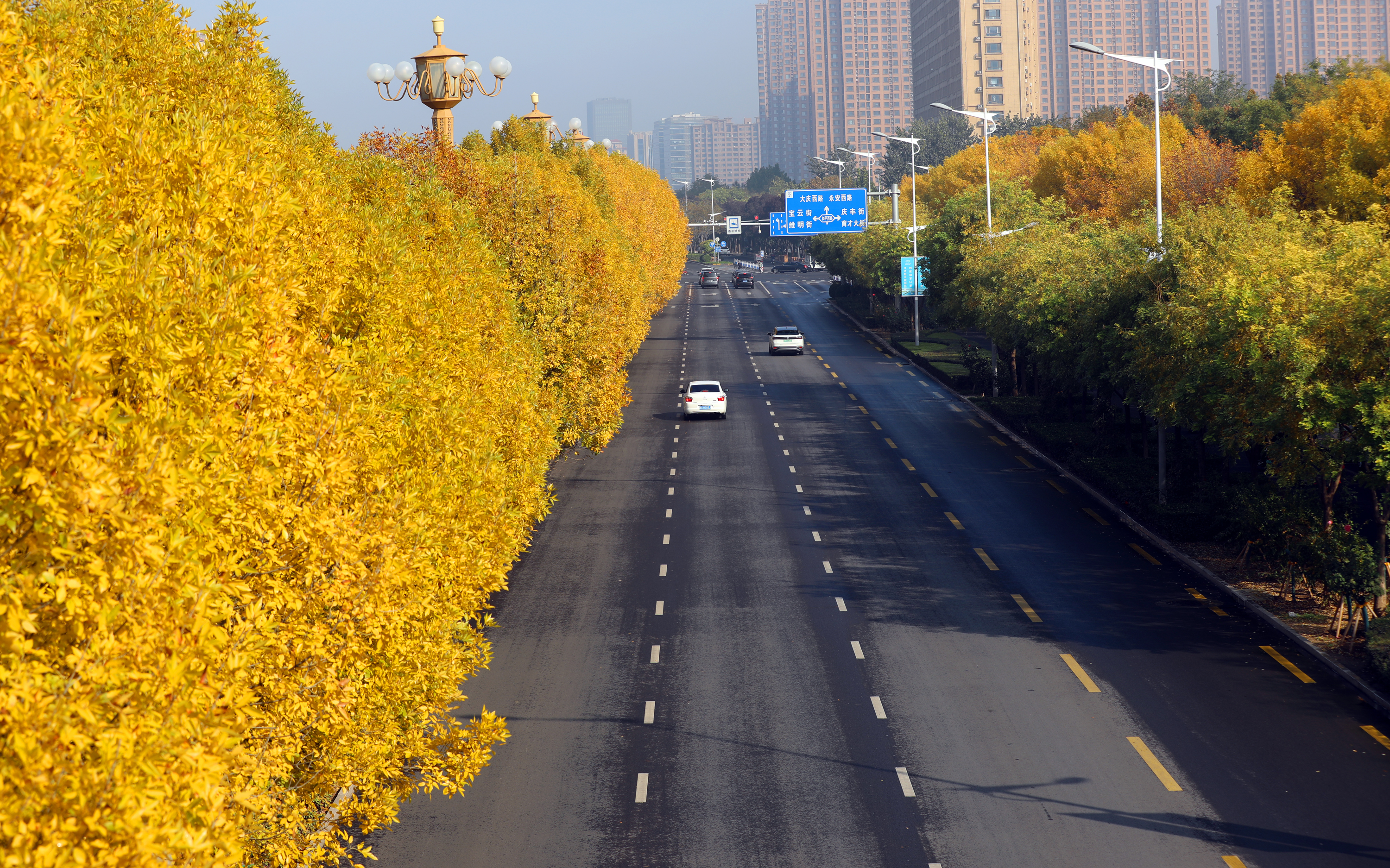 又是一年深秋,隨著氣溫逐漸降低,市區前進大街上的白蠟樹、金葉槐等樹木開始變色,金黃與翠綠交織,成為一道亮麗的風景線。市民或停下腳步,舉起手機拍照;或悠閑散步,感受這最美的秋色。