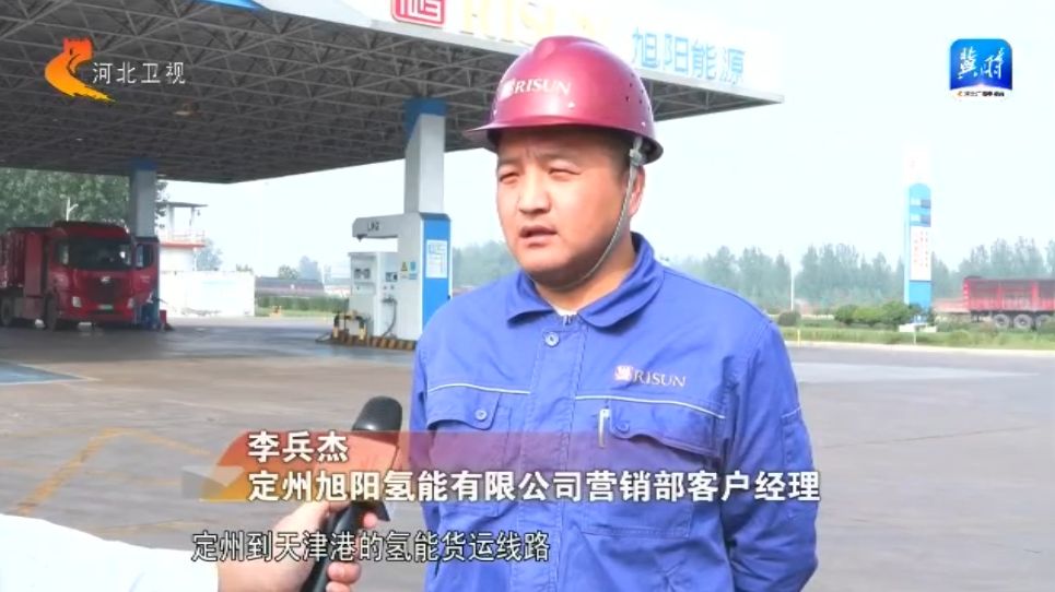 我現在是在定州市的旭陽氫能綜合能源站,在我身后這輛載滿了焦炭的重卡和一般的重卡可不一樣,這種重卡"吃"進去的是氫,排出來的是水,每行駛100公里可減少二氧化碳排放量大約是70千克。他們在這里加滿氫氣之后,將開啟前往天津港的綠色物流運輸之路。而這只是旭陽綠色能源應用的場景之一。