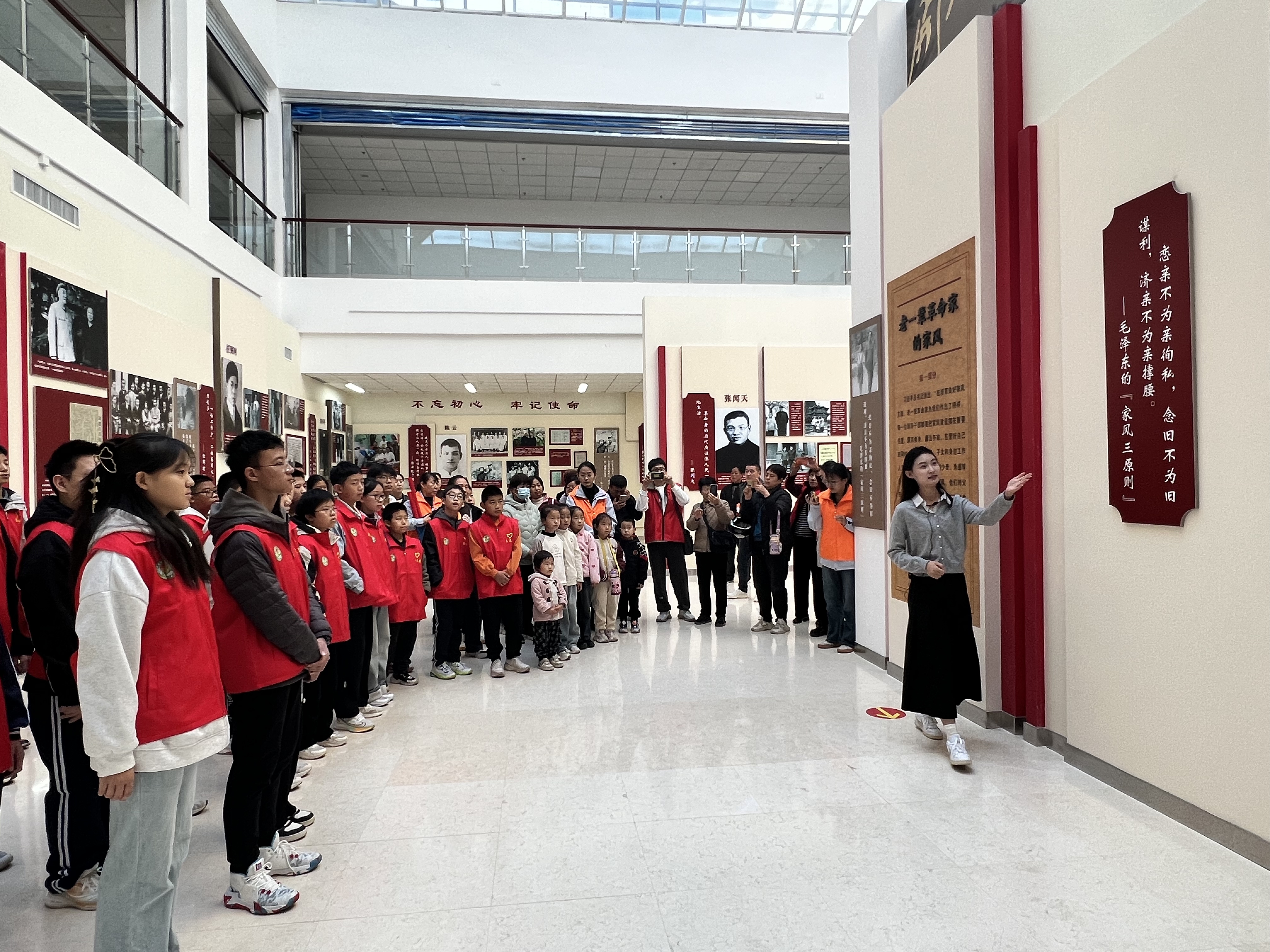 9時,同學們在講解員的引導下,開始認真閱覽展館中一份份珍貴的檔案文獻,一幅幅歷史圖片、一件件文稿和大量歷史資料向同學們展示著不同歷史時期共產黨人特別是老一輩革命家感人的家風故事。“家風是一個家庭世代相傳的風尚和作風,老一輩革命家以德傳家、以學興家、以儉持家、以嚴治家、以廉守家,并對青少年殷殷囑托‘小孩子要用心讀書,現在不學將來沒用’。”講解員用心細致地講解著,孩子們緊緊跟隨,靜靜聆聽。圖文加講解的形式,生動又全面,深深吸引著每一位學生。革命先輩們注重家風建設、涵養浩然正氣的事跡感染著每一位同學。