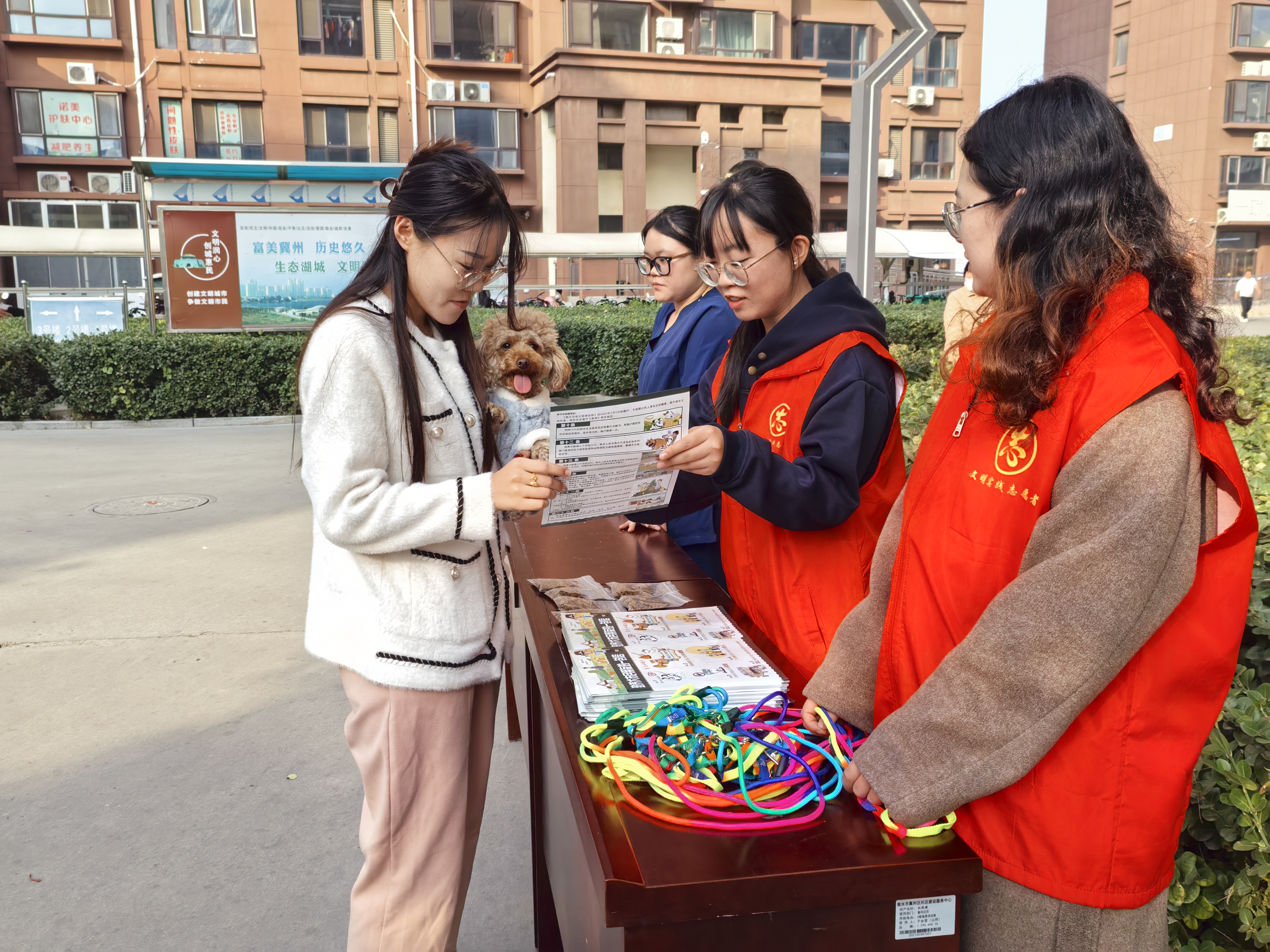 三方聯動,引導居民文明養犬。10月30日,冀州區委社工部聯合區委宣傳部、區公安局,以信都社區新時代文明實踐站為平臺,組織開展“創建文明城市 爭當文明養犬人”宣傳活動。采取“宣傳+競答+游戲”的活動形式,民警及志愿者發放了文明養犬宣傳冊,講解文明養犬的重要性、養犬規范等相關知識,普及不文明養犬可能帶來的安全隱患,并耐心地解答居民的疑問,號召小區居民出門遛狗時要牽繩,主動避讓老人、兒童及孕婦等特殊群體,定期為愛犬注射疫苗和體檢,嚴格遵守文明養犬的相關法律法規。現場還設置了寵物登記、文明養犬知識有獎競答、趣味套圈等環節,引導居民文明養犬。