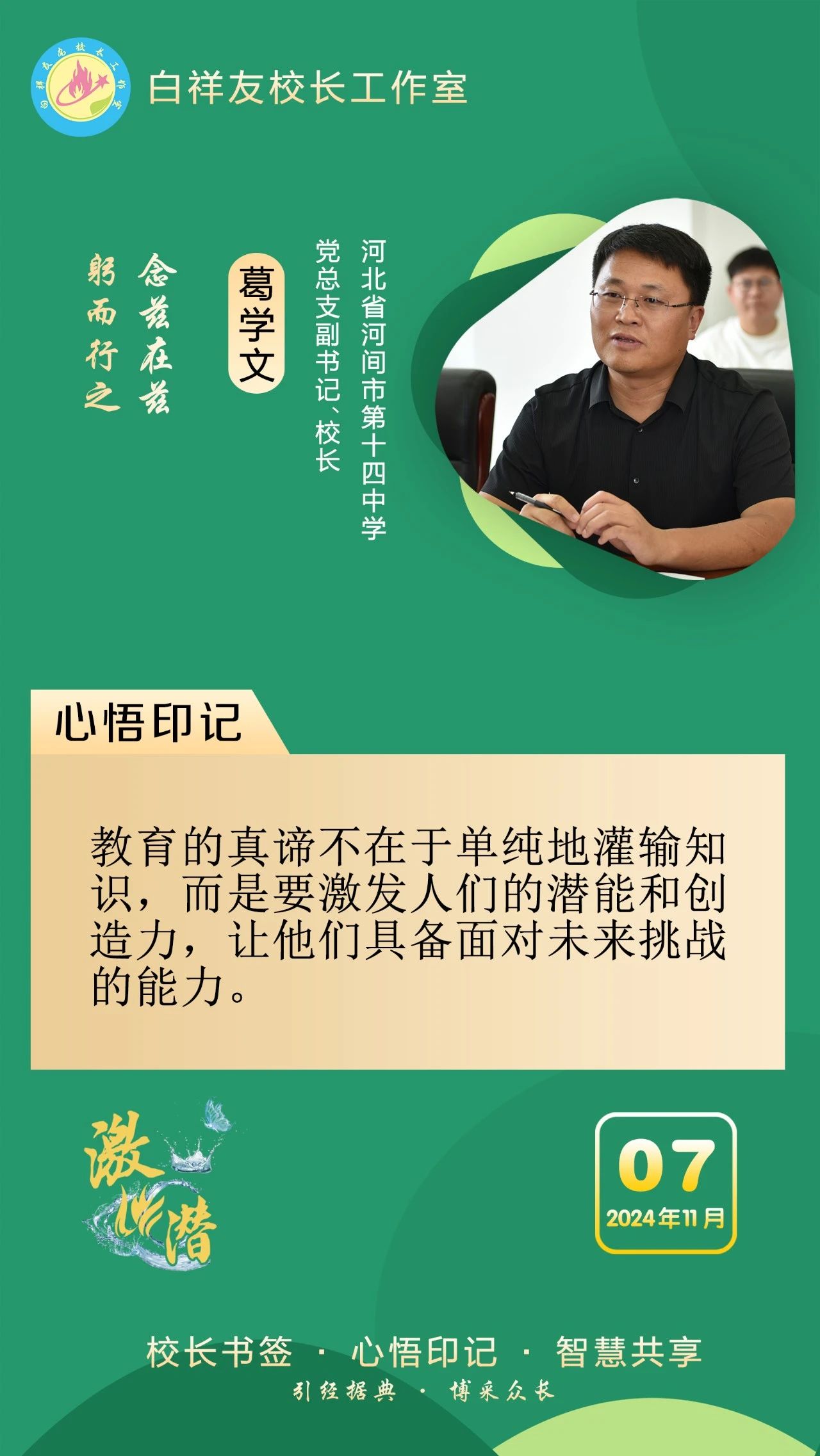 “白祥友校長工作室”成立于2019年4月,是教育部“國培計劃”中小學名校長領航工程、河北省首批名校長工作室,目前省內外成員校37個。工作室堅持“資源共享、智慧共融、互助共贏”理念,已成為思想碰撞的交流場,資源共享的品牌站,成果展示的輻射源。