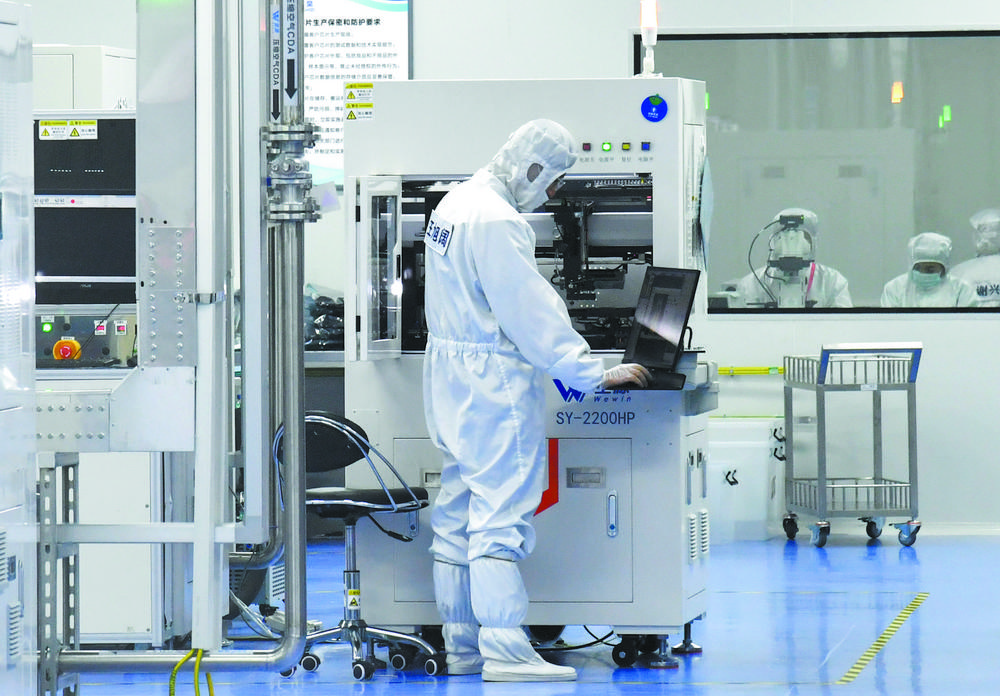 河北圣昊光電科技有限公司的工作人員正在進行芯片檢測。