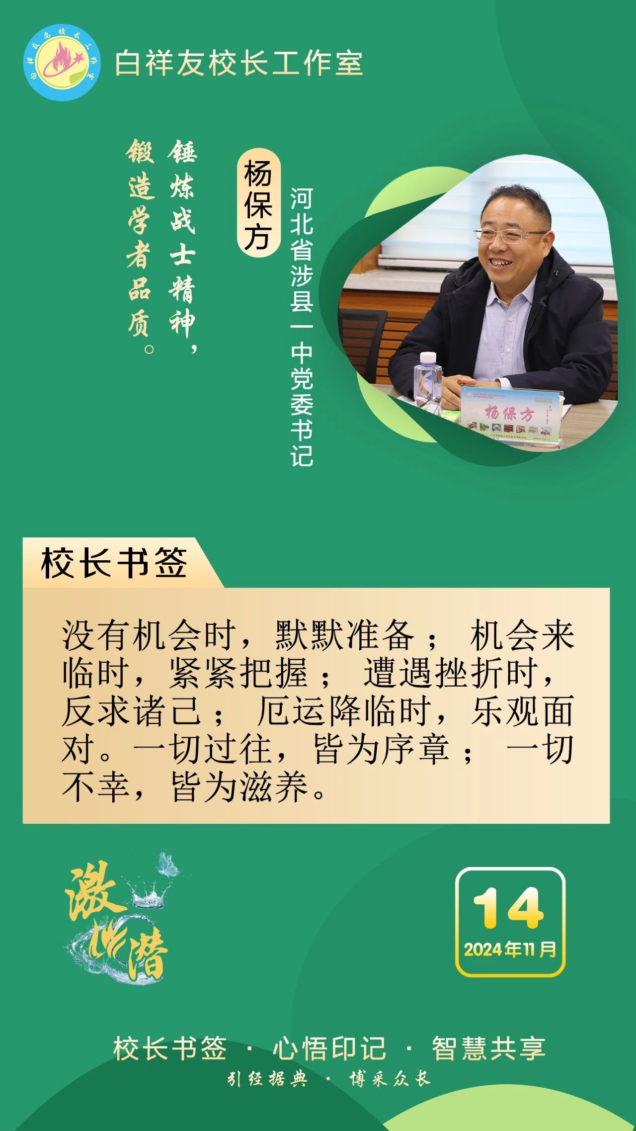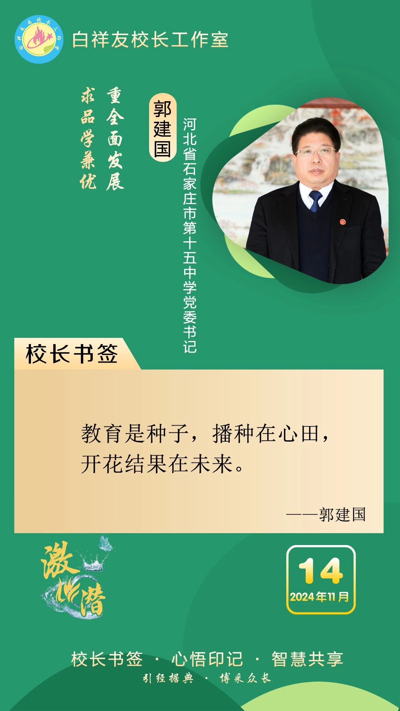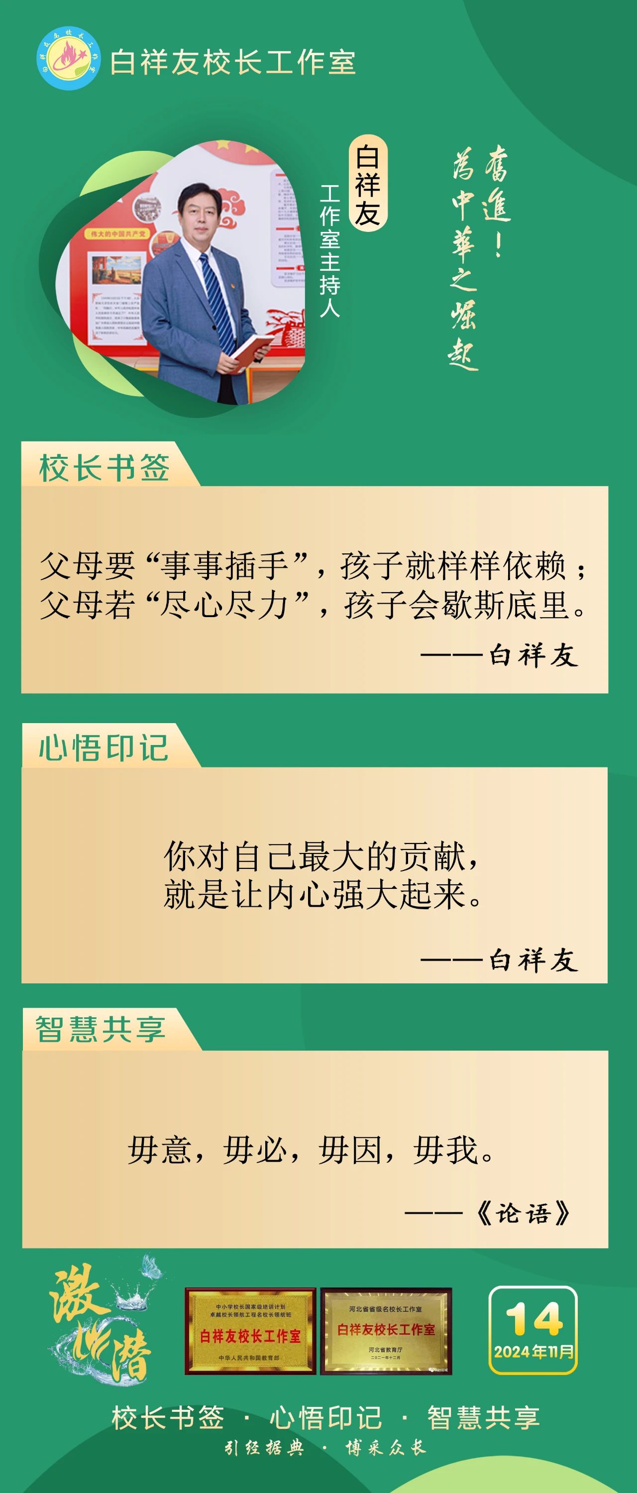 “白祥友校長(zhǎng)工作室”成立于2019年4月,是教育部“國(guó)培計(jì)劃”中小學(xué)名校長(zhǎng)領(lǐng)航工程、河北省首批名校長(zhǎng)工作室,目前省內(nèi)外成員校48個(gè)。工作室堅(jiān)持“資源共享、智慧共融、互助共贏”理念,已成為思想碰撞的交流場(chǎng),資源共享的品牌站,成果展示的輻射源。