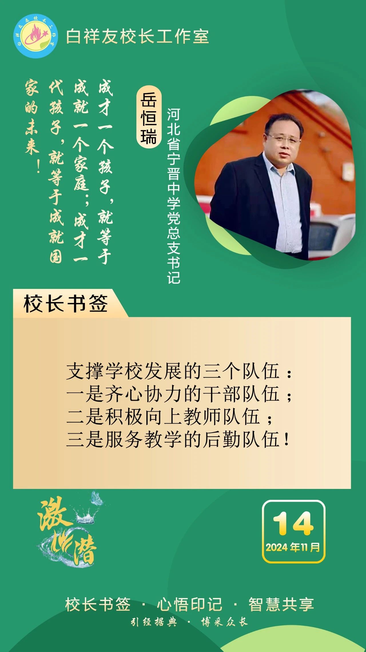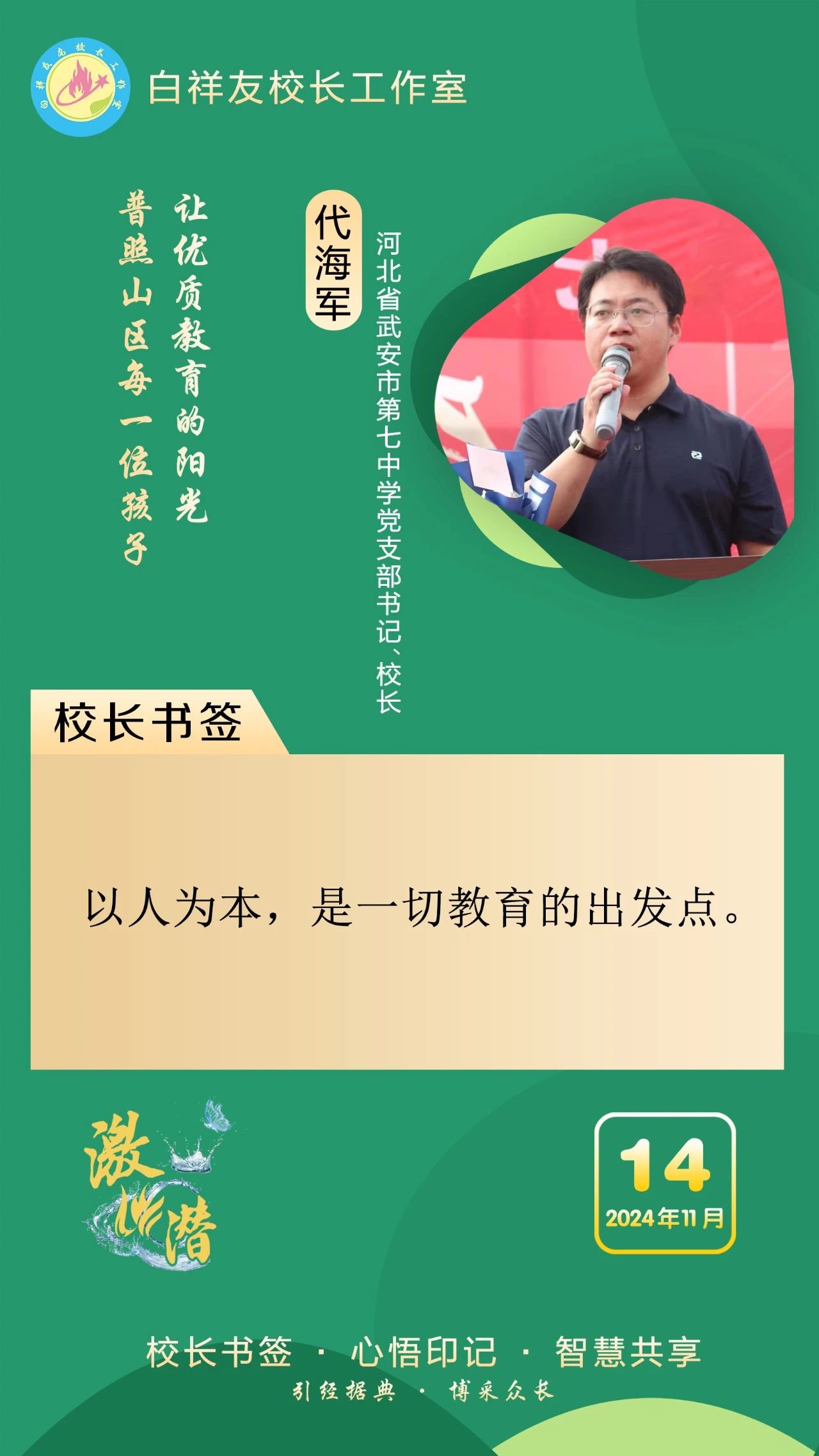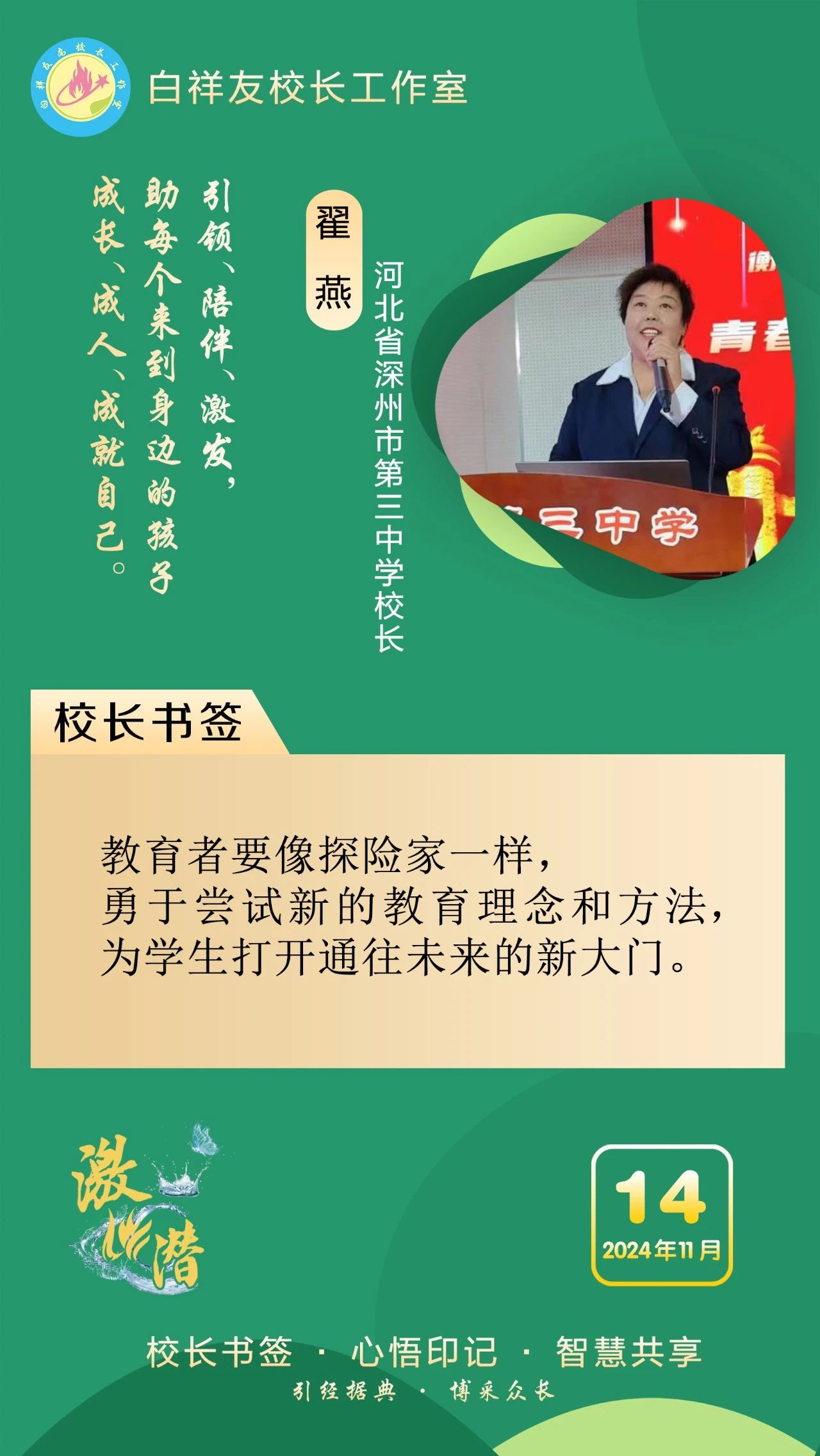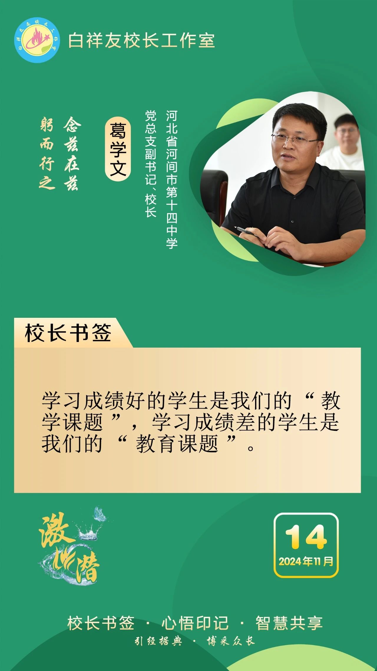 “白祥友校長(zhǎng)工作室”成立于2019年4月,是教育部“國(guó)培計(jì)劃”中小學(xué)名校長(zhǎng)領(lǐng)航工程、河北省首批名校長(zhǎng)工作室,目前省內(nèi)外成員校48個(gè)。工作室堅(jiān)持“資源共享、智慧共融、互助共贏”理念,已成為思想碰撞的交流場(chǎng),資源共享的品牌站,成果展示的輻射源。