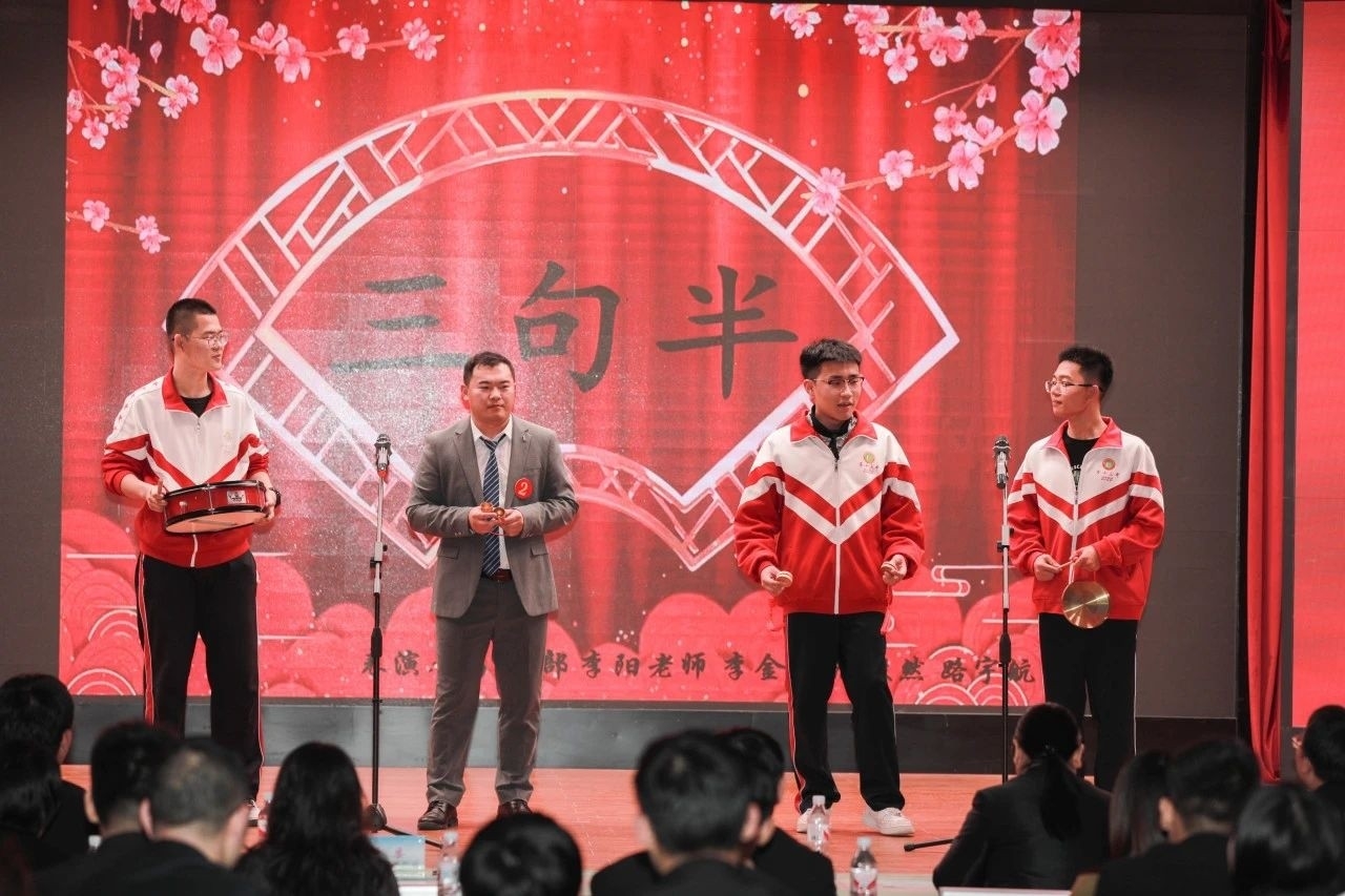 在才藝展示環節,老師們紛紛亮出自己的絕活,演唱歌曲、展示書法,更有三句半、舞蹈等精彩節目輪番上演,讓在場的師生們領略到了班主任們的另一面風采。