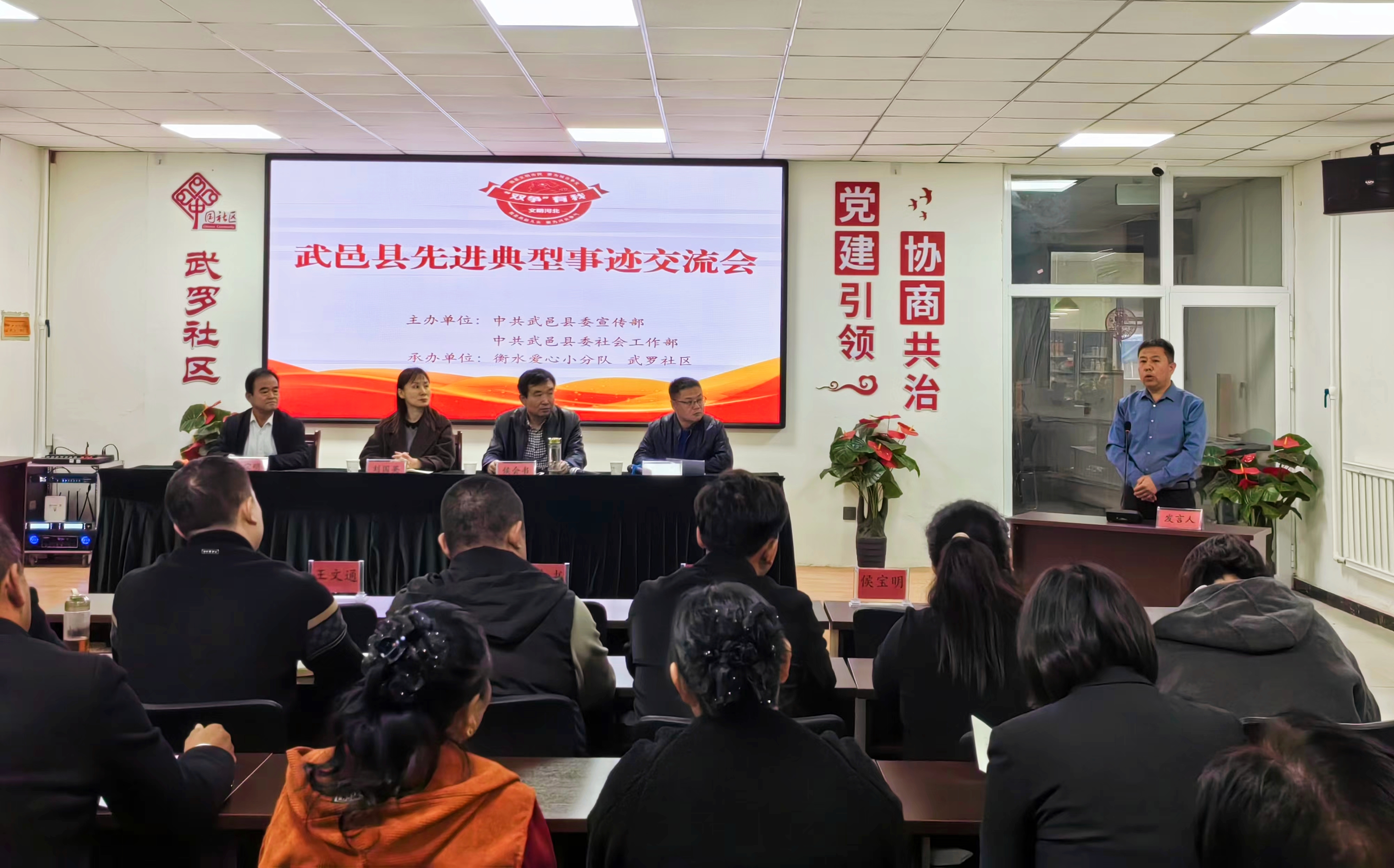 近日,由衡水市武邑縣委宣傳部、縣委社會工作部、衡水愛心小分隊、武羅社區在武邑縣武羅社區文化活動中心聯合舉辦了“先進典型事跡交流會”活動。