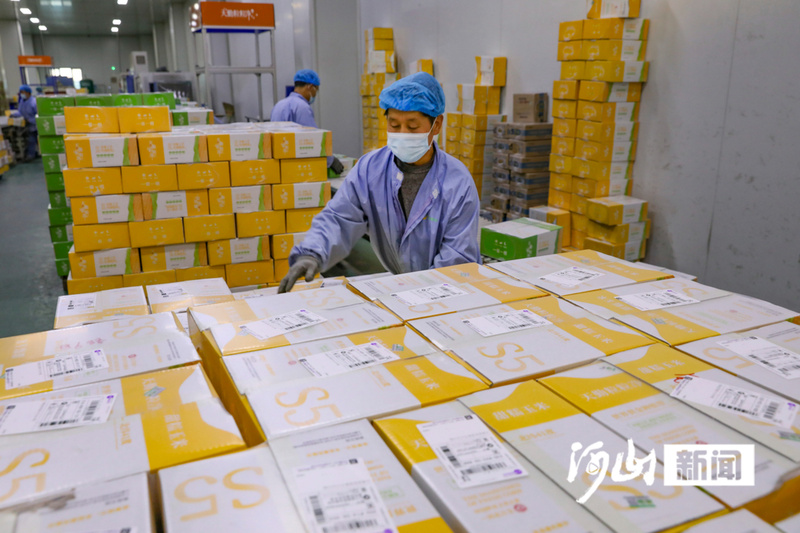 “我們的甜糯玉米全部采取真空鎖鮮包裝,保鮮度高達99%,純天然,不加任何添加劑。”在張家口天勤農貿有限公司抖音直播間,主播張曉興奮地展示各種顏色的鮮食玉米。高速運轉的電商團隊,將訂單第一時間傳輸給倉儲處,轉而到達生產環節……