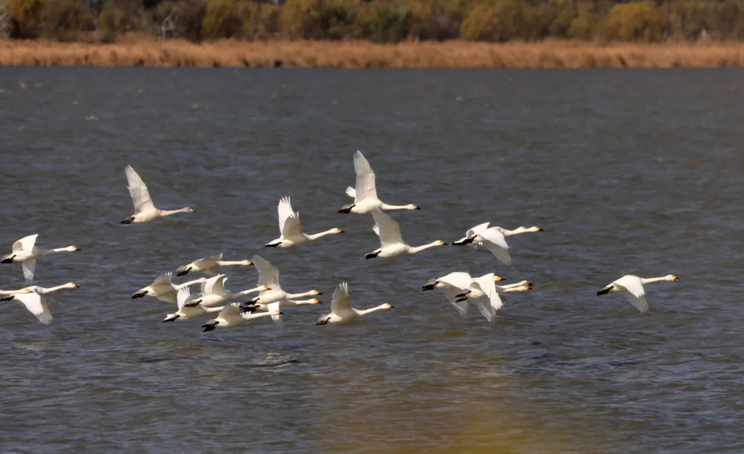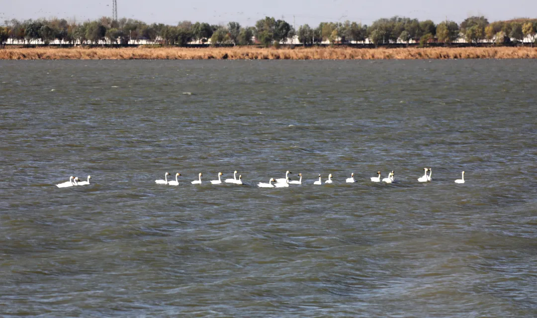 據衡水濱湖新區資源保護局濕地生態監測科科長張余廣介紹,良好的生態環境、優越的地理位置和豐富的鳥類食物供給,使得每年都會吸引天鵝來此越冬棲息。目前,已監測到三批天鵝共100余只,天鵝種群遷徙將持續到11月底結束。