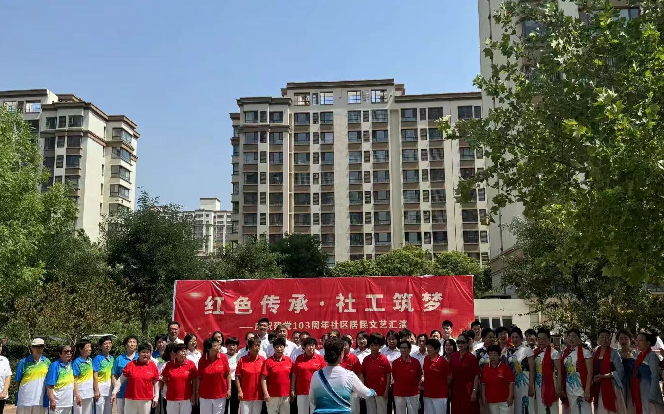 聚焦精神文明,化身“文藝者”。為豐富社區居民精神文化生活,增強黨員與群眾間的凝聚力和向心力,中老年益助協會聯合黨支部聯合七個社區黨支部舉辦了“紅色傳承、社工筑夢”為主題的社區文藝匯演,整場匯演共有24個節目,300余人參加了此次活動,充分展現了廣大黨員、社區居民積極向上的精神風貌,營造了愛黨、頌黨、敬黨的濃厚氛圍。