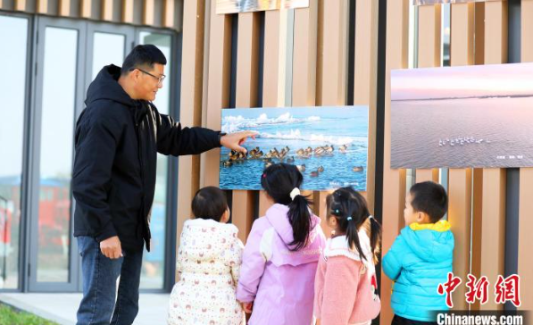圖為小朋友在觀看衡水湖科普展、攝影展。張凱 攝