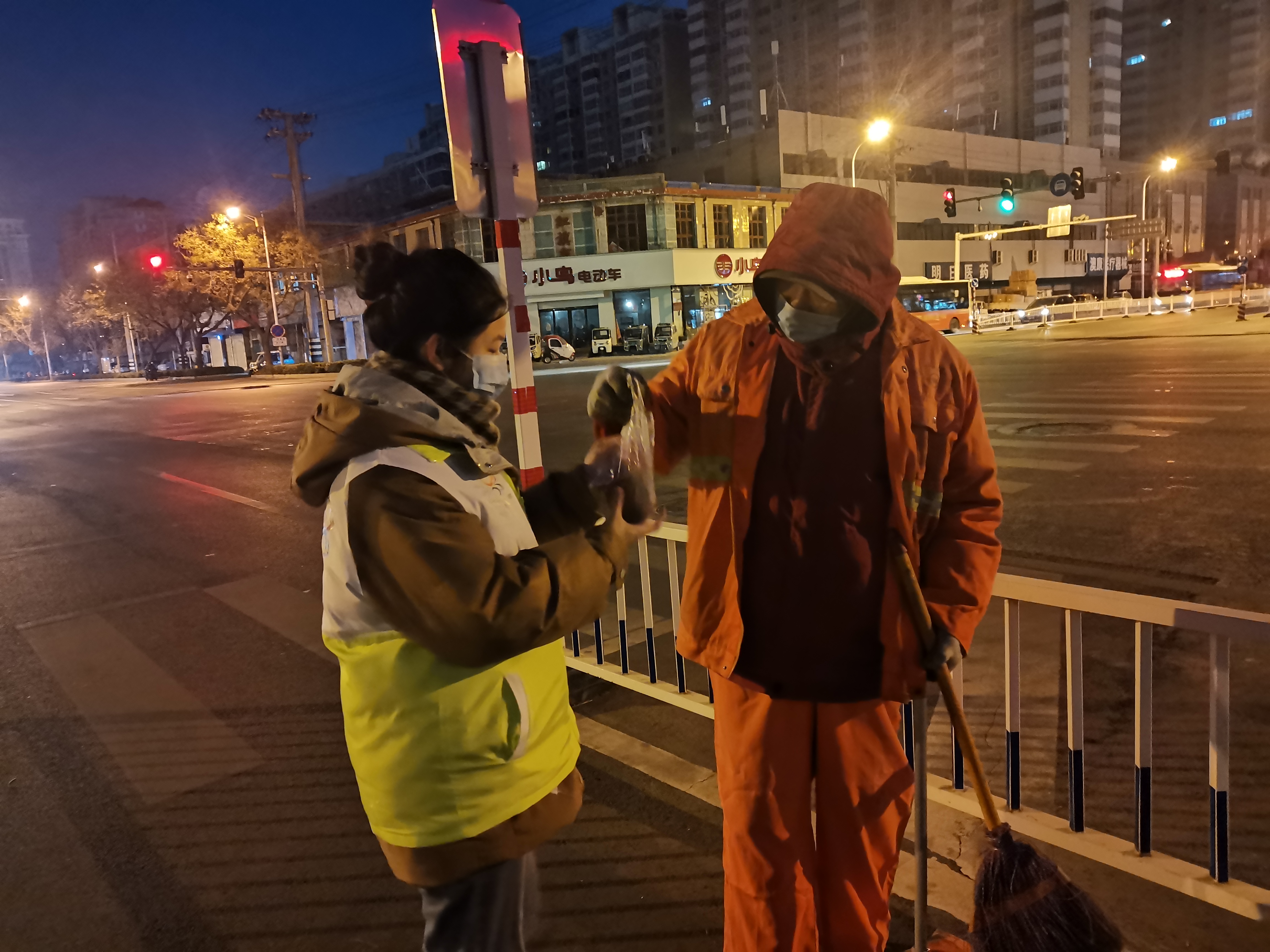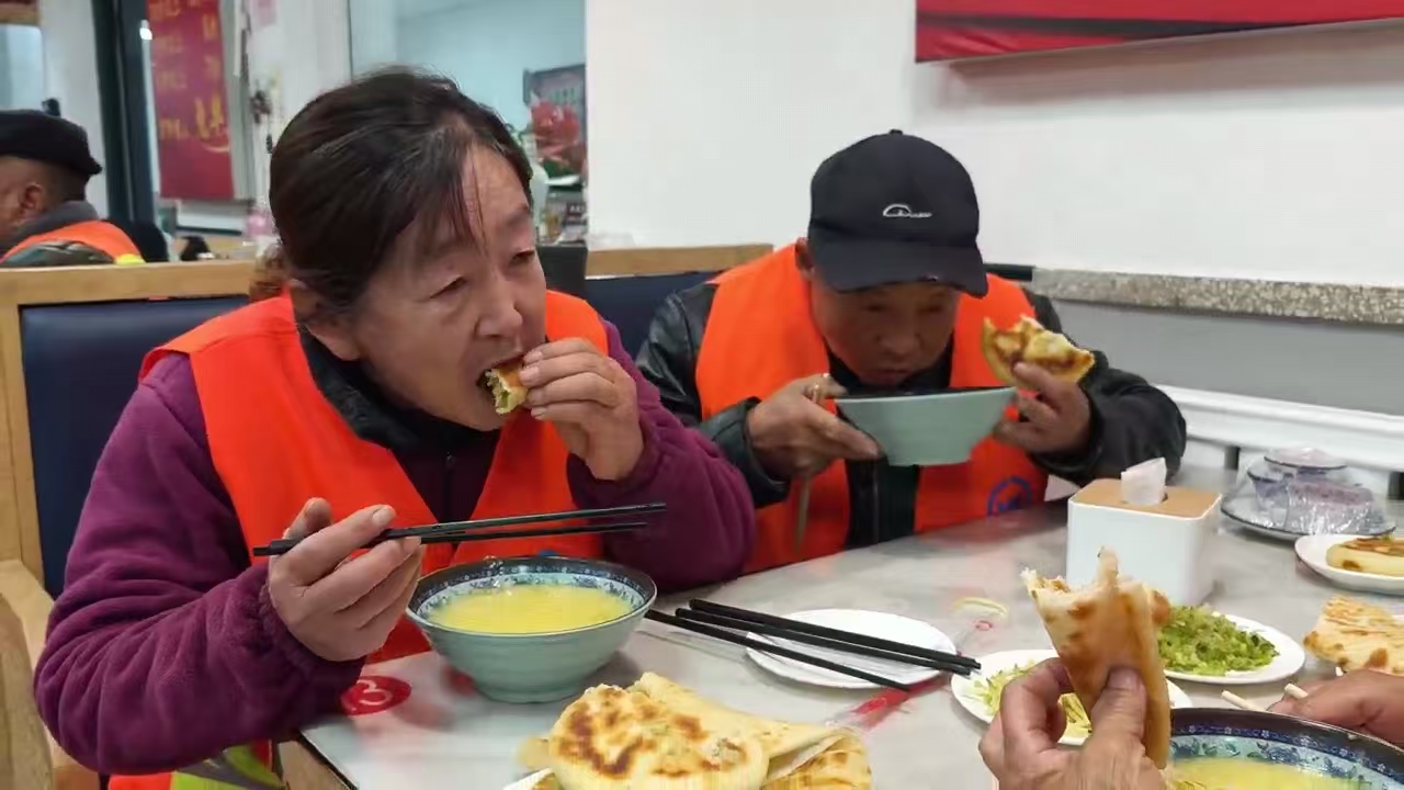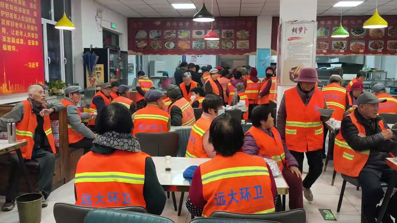“挺好的,以前早飯只能湊合著吃點餅干,喝點開水。現(xiàn)在天冷了,能在屋里吃上熱乎乎的飯菜,真的很感動,暖到心里了。”環(huán)衛(wèi)工人緱玉素笑著說。