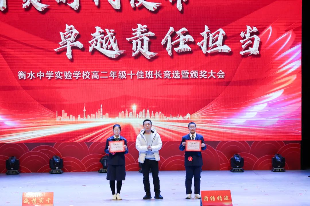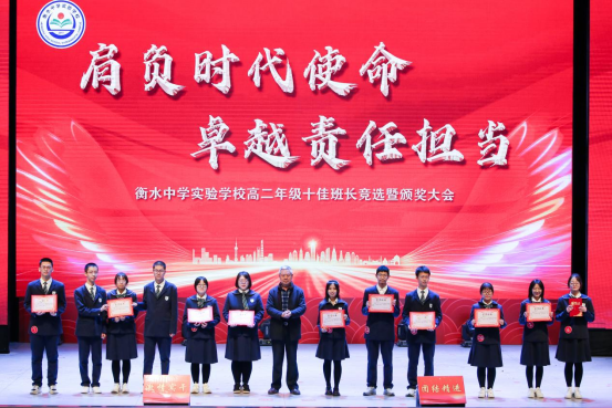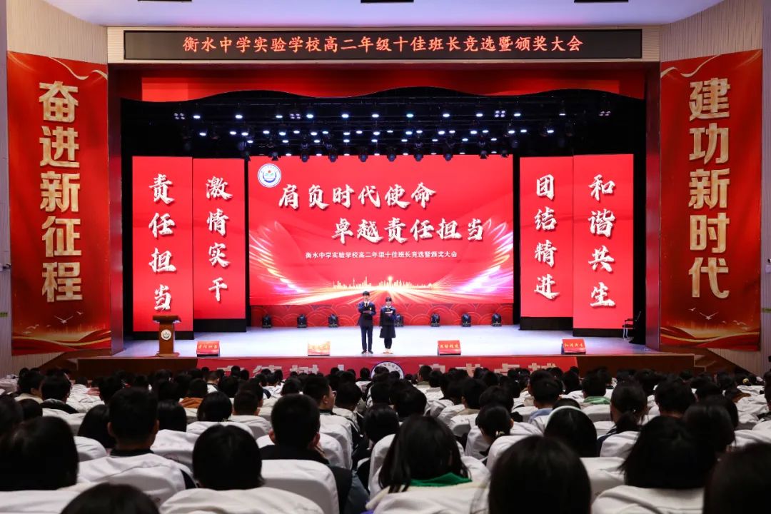 為增強學生“知我愛我榮我、知班愛班榮班”意識,發揮學生干部的示范引領作用,近日,衡水中學實驗學校高二年級成功召開了以“肩負時代使命 卓越責任擔當”為主題的十佳班長競選暨頒獎大會。
