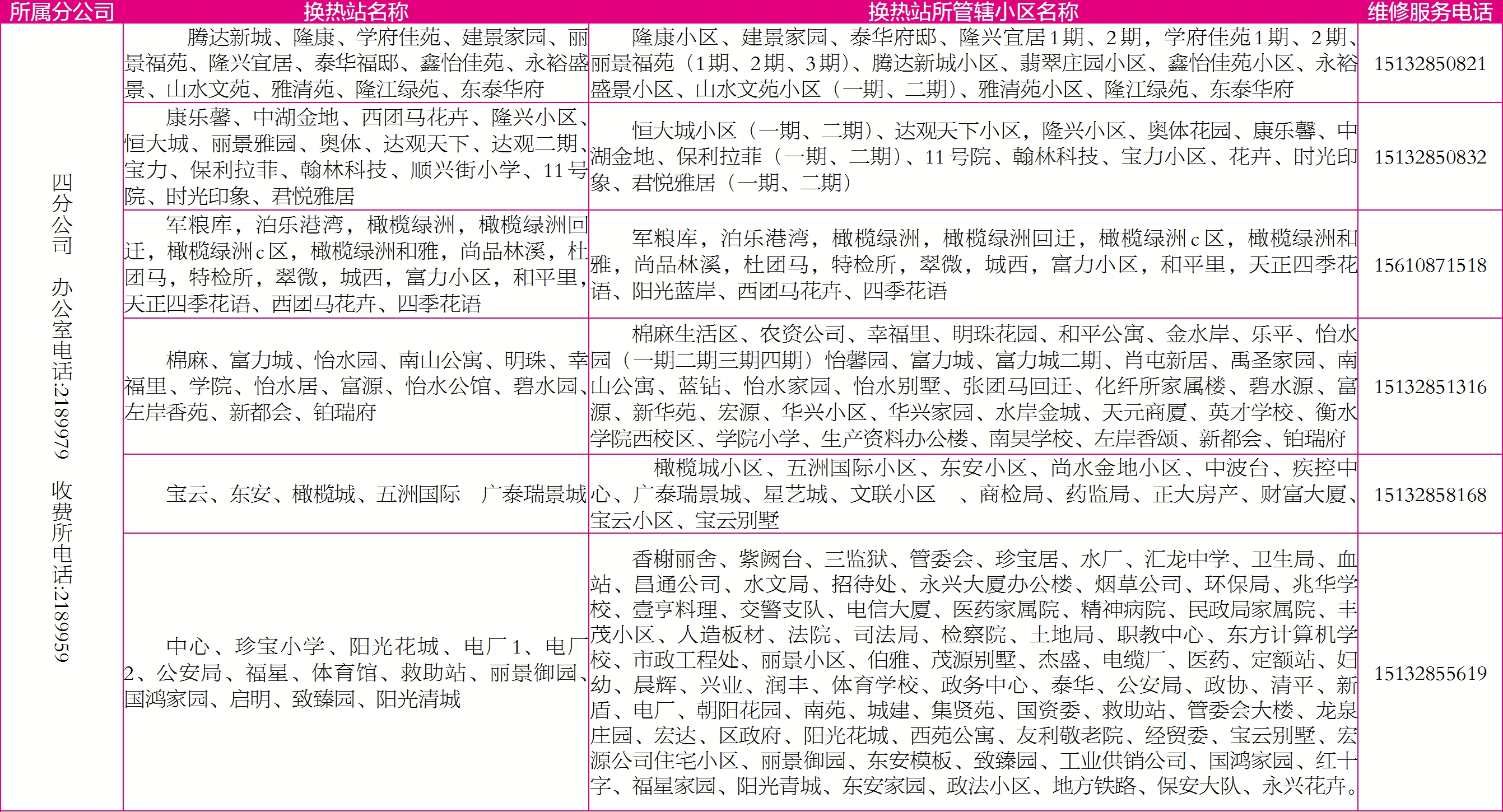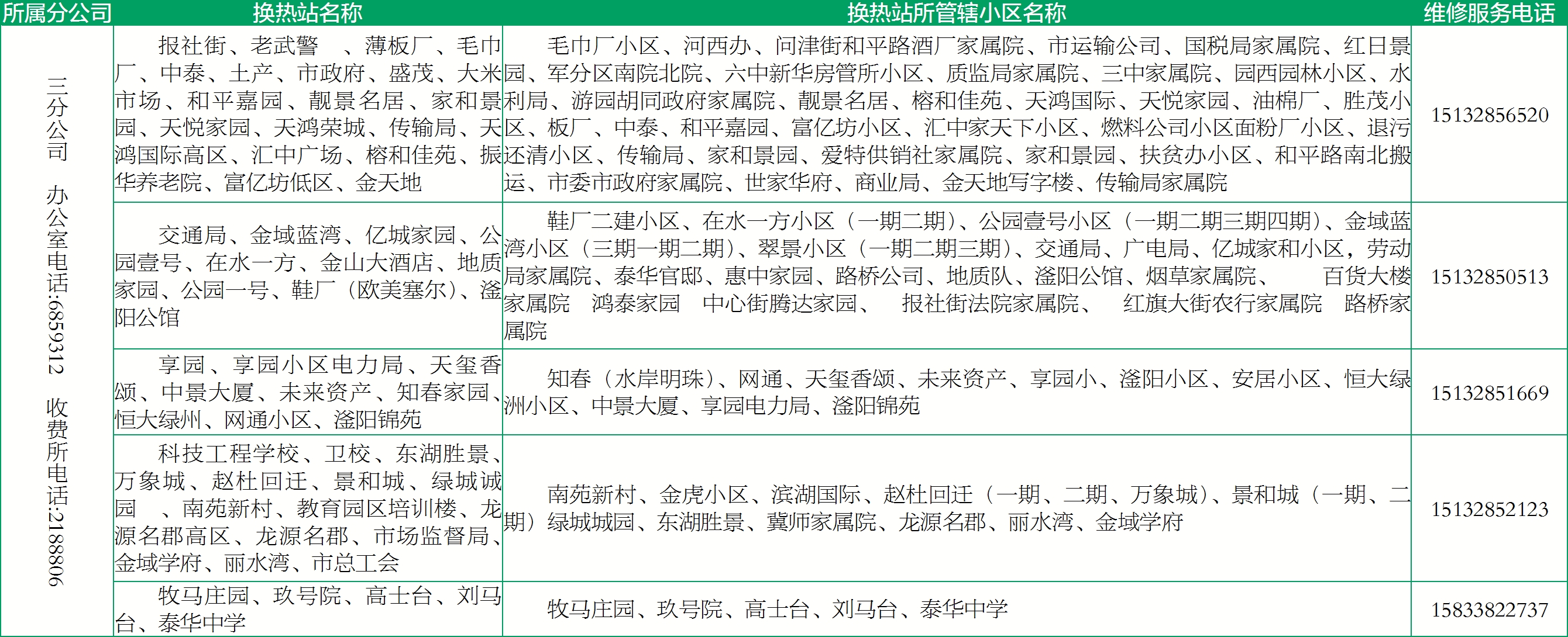 具體服務(wù)區(qū)域及電話公布如下: