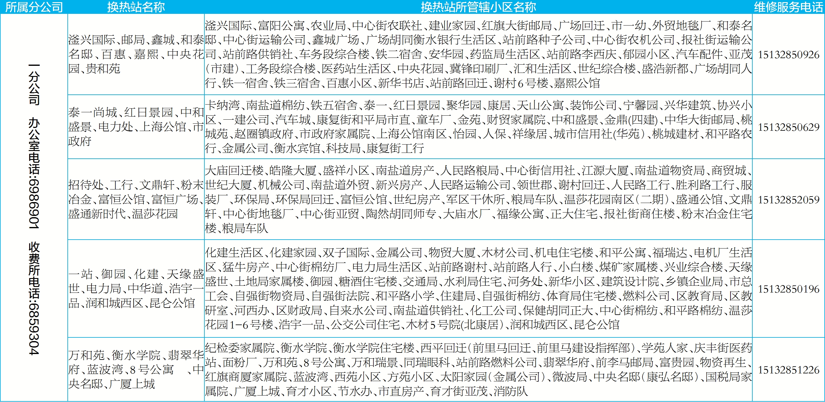 為切實(shí)為熱用戶提供安全、優(yōu)質(zhì)、高效的供熱服務(wù),及時(shí)解決熱用戶反映問題,2024—2025采暖季衡水恒通熱力有限責(zé)任公司積極拓寬供熱問題反饋處理渠道,如有用熱問題,可及時(shí)撥打所屬轄區(qū)電話或客服熱線報(bào)修,客服熱線2101111開啟24小時(shí)接聽服務(wù),全天候?yàn)橛脩艚鉀Q用暖訴求。
