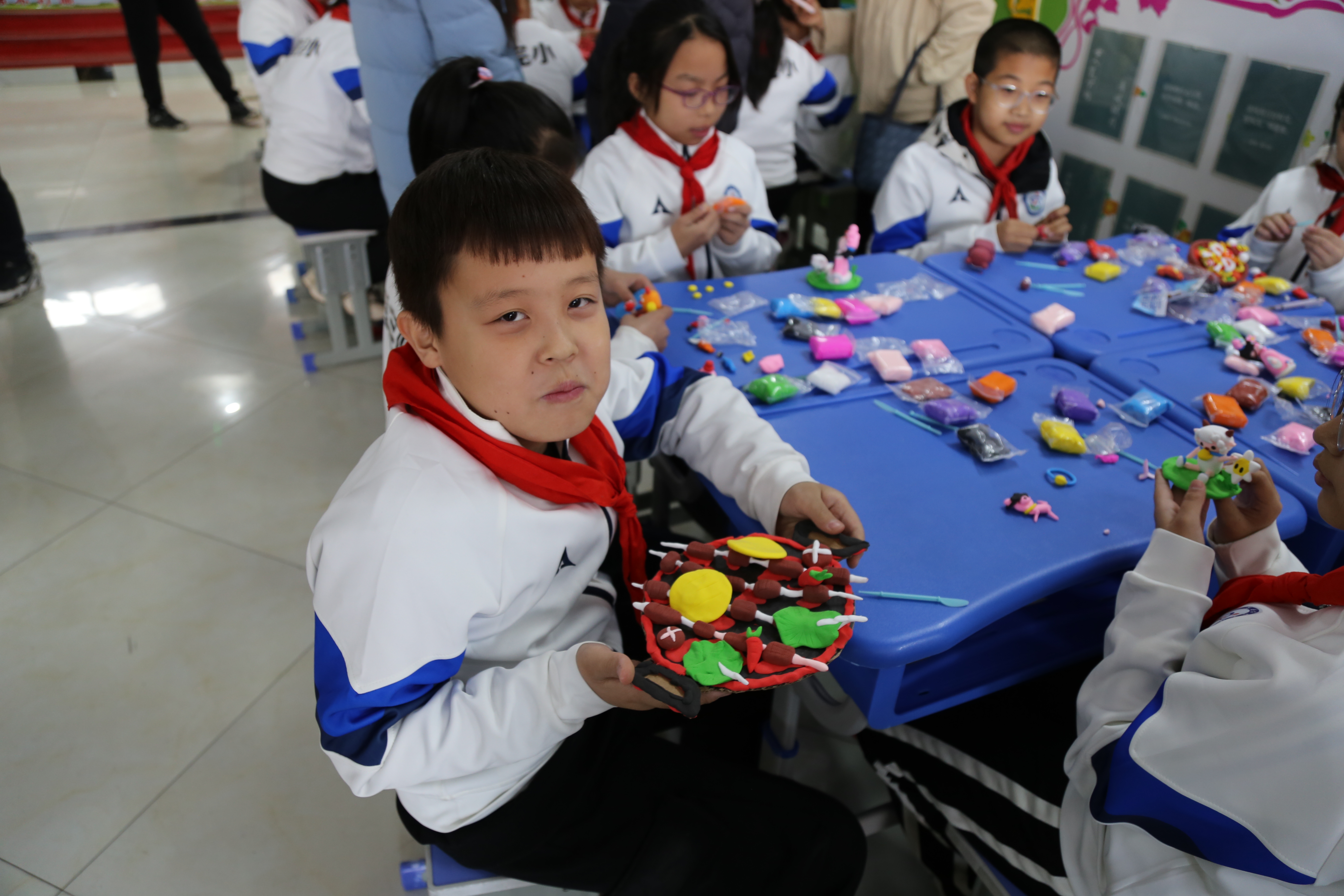 “這是我制作的玩具游艇模型,運用機械能轉化和浮力原理,電池提供電能,通過電機帶動軸的轉動,從而帶動螺旋槳旋轉,推動游艇前進。”三年級的劉芳源認真地介紹著其制作的科技作品。利用課余時間,從舊玩具上拆下來的電池、吃雪糕攢下的雪糕棒等,在劉芳源的奇思妙想下,變成了科技感十足的玩具游艇,吸引了眾多師生駐足觀看。