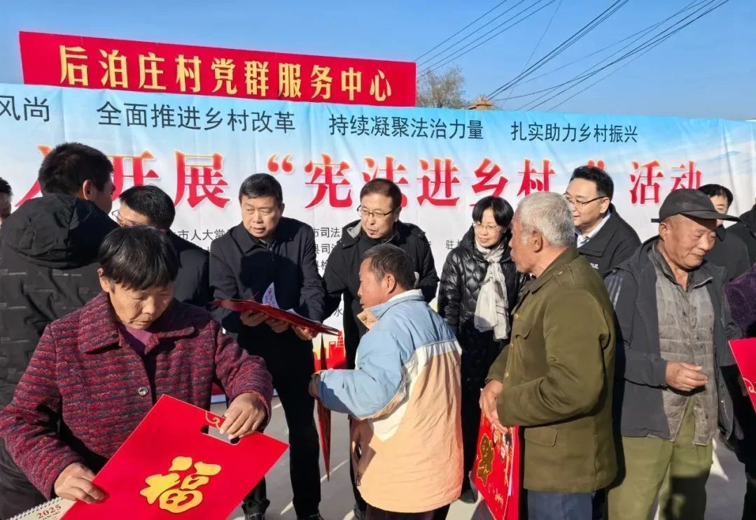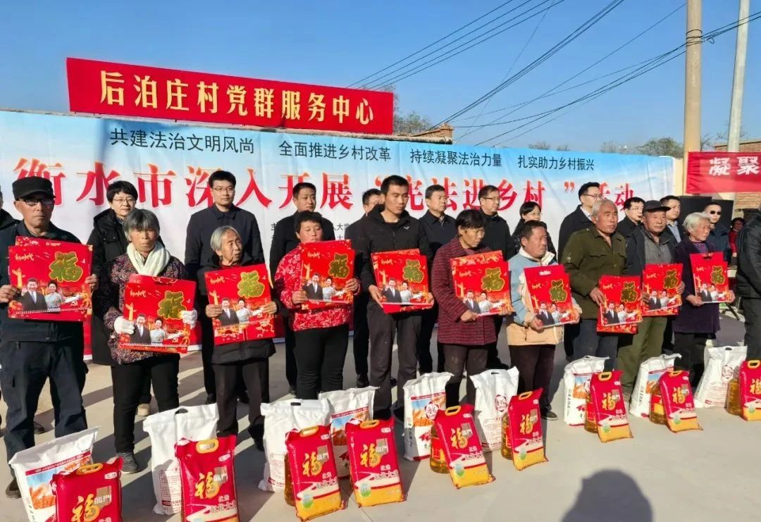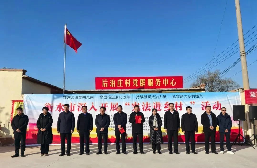 今年12月4日是第十一個國家憲法日,為弘揚憲法精神,為鄉村振興營造良好的法治環境,12月3日,由衡水市人大常委會、衡水市司法局主辦的“憲法進鄉村活動”來到武邑縣審坡鎮后泊莊村,助推憲法法律進村入戶、走進基層、深入群眾。