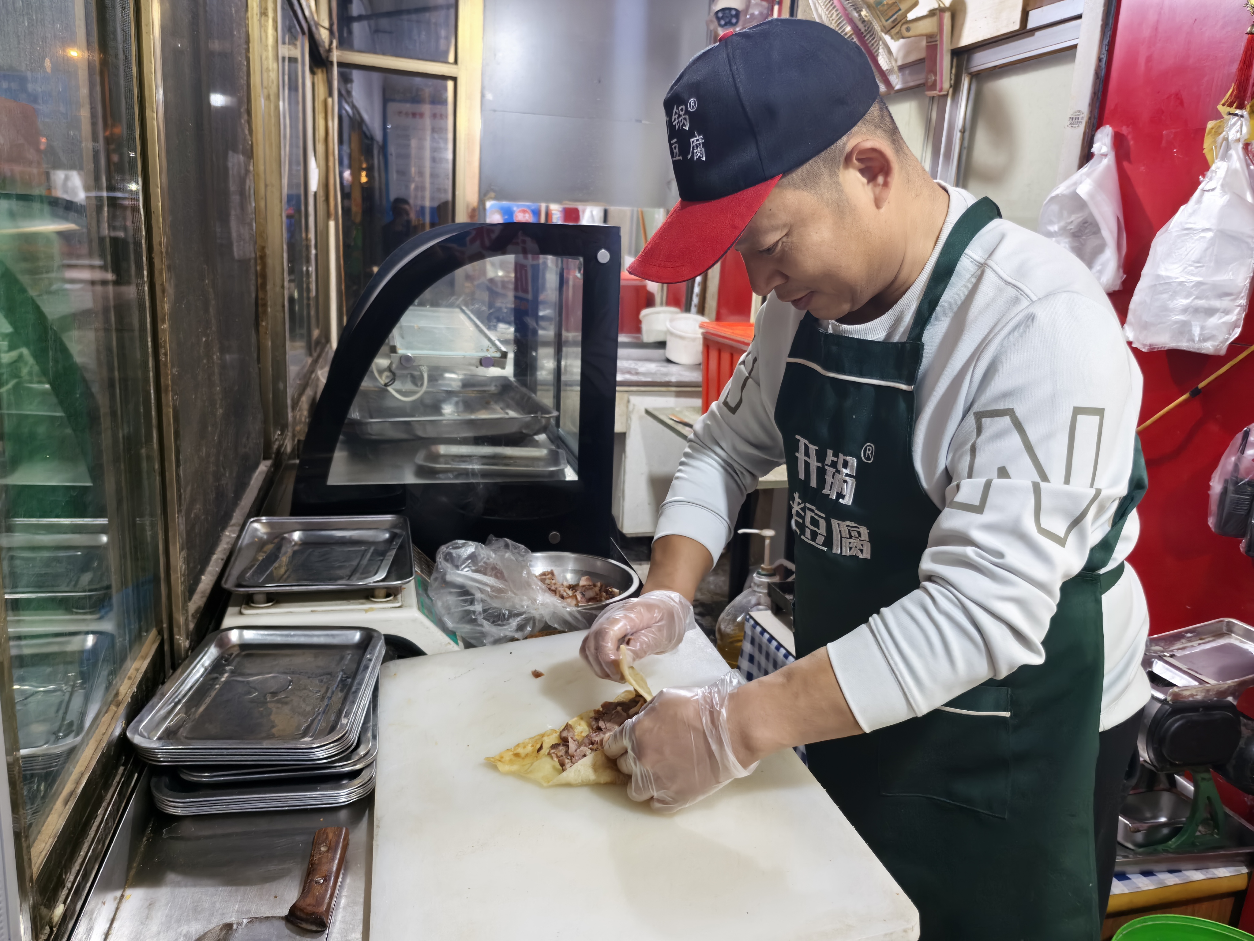 早上,來一碗清爽的老豆腐,再加一套噴香的薄餅卷肉,這是不少老衡水人的早餐標(biāo)配。近日,位于禮堂街上衡水人熟知的“開鍋老豆腐”傳承人王海彬,帶著他的“薄餅卷熏肉”這一風(fēng)味小吃,在北京舉辦的2024年全國面食烹飪技藝交流賽上,將特金獎收入囊中。