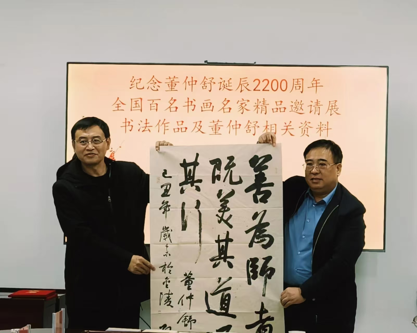 12月2日下午,“紀(jì)念董仲舒誕辰2200周年全國(guó)百名書畫名家精品邀請(qǐng)展”作品及董仲舒有關(guān)資料接收儀式在衡水市檔案館舉行。80幅以弘揚(yáng)董子文化和儒家思想為主題的書法作品及174冊(cè)國(guó)內(nèi)外董仲舒研究相關(guān)著作順利入藏衡水市檔案館。
