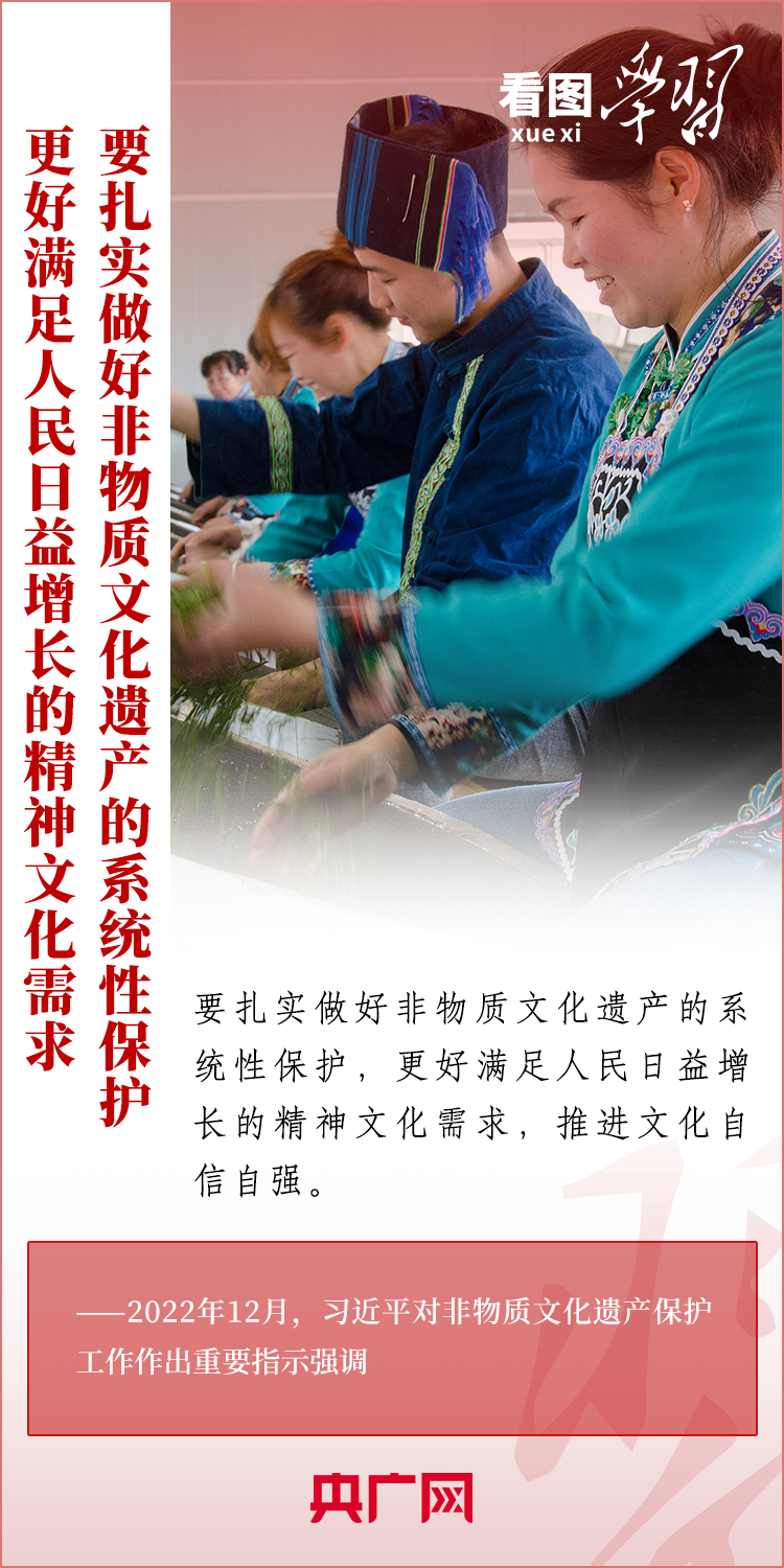非物質(zhì)文化遺產(chǎn)是中華優(yōu)秀傳統(tǒng)文化的重要組成部分,是中華文明綿延傳承的生動見證。習近平總書記高度重視推動中華優(yōu)秀傳統(tǒng)文化的創(chuàng)造性轉(zhuǎn)化、創(chuàng)新性發(fā)展,多次對非物質(zhì)文化遺產(chǎn)保護工作作出重要指示,強調(diào)要扎實做好非物質(zhì)文化遺產(chǎn)的系統(tǒng)性保護,推動中華文化更好走向世界。