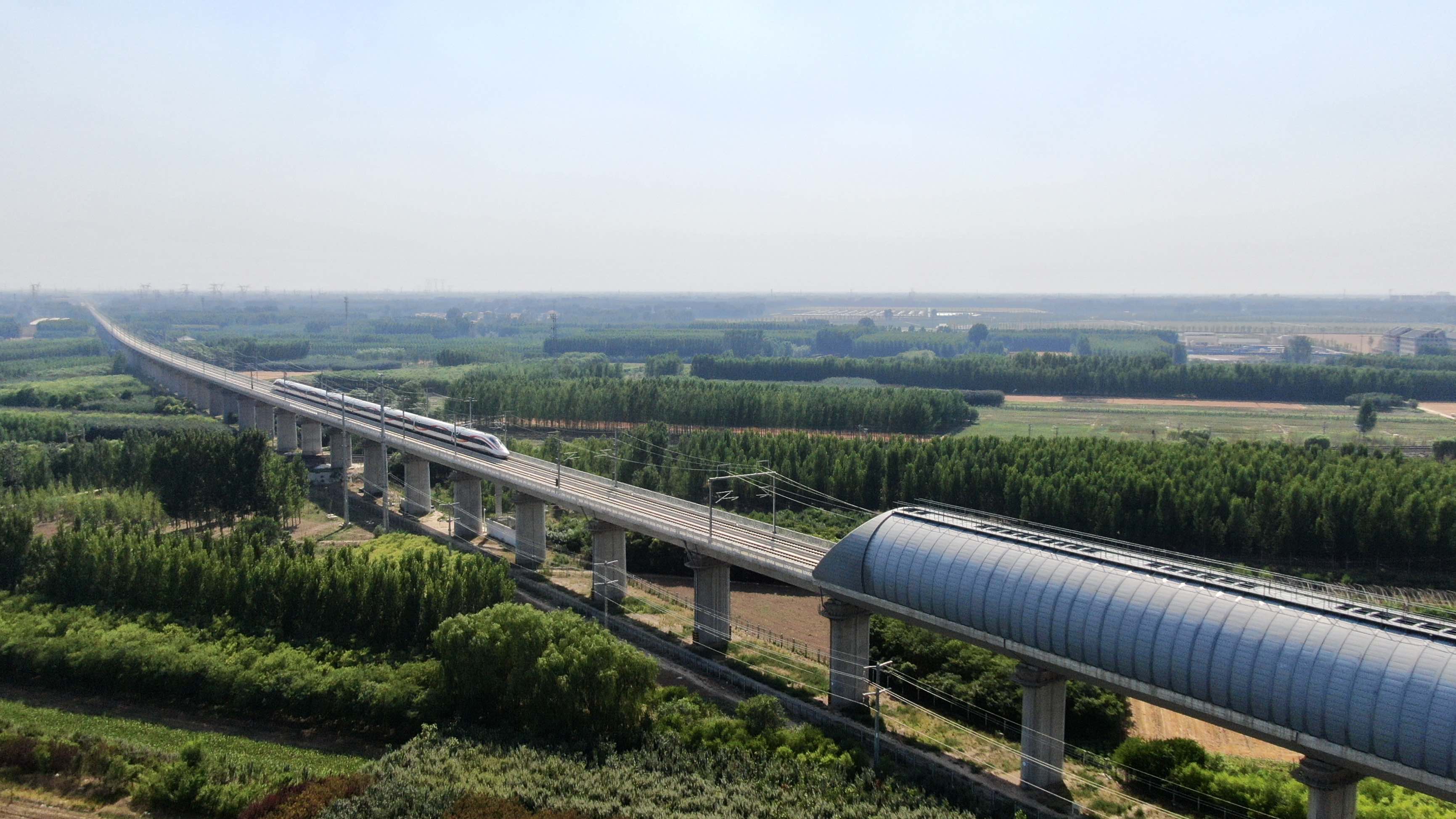 圖為列車駛過京雄高鐵霸州段。(資料片)